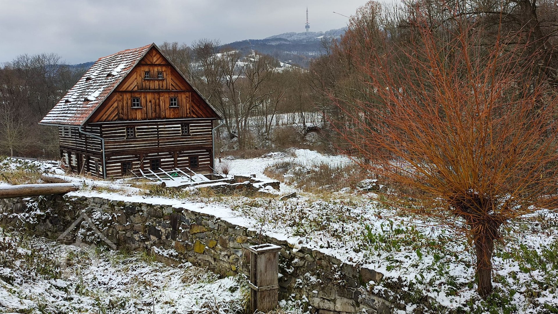 Jednoduché umělecké složení transferované z mlýna v Hamrech u Hlinska: