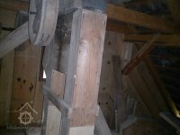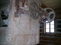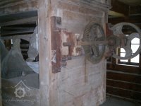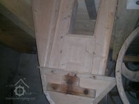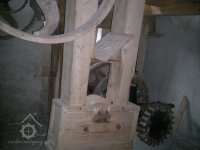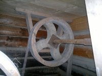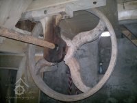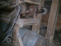Pohon kamenného mlecího složení je pak realizován malým pravoúhlým palečním převodem od předlohové hřídele.