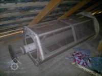 -- hranolový předvysévač (2 drátěná síta),řemeslně provedený, zdobné prvky na dřevěných konstrukcích, počátek 20. stol.