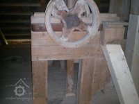 -- válcová mlecí stolice od výrobce Antonín Jeřábek - Velké Meziříčí, vyrobená v počátku 20. stol.