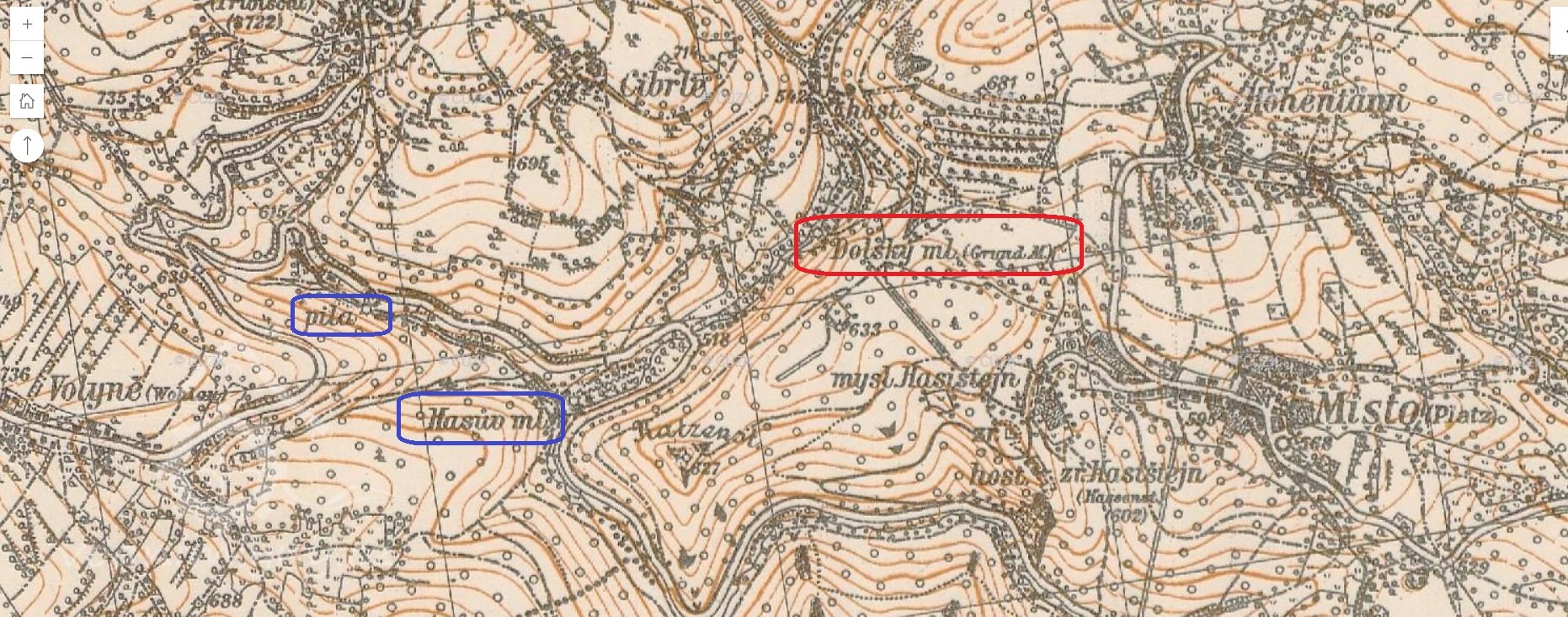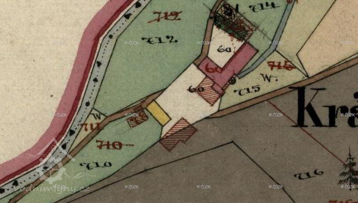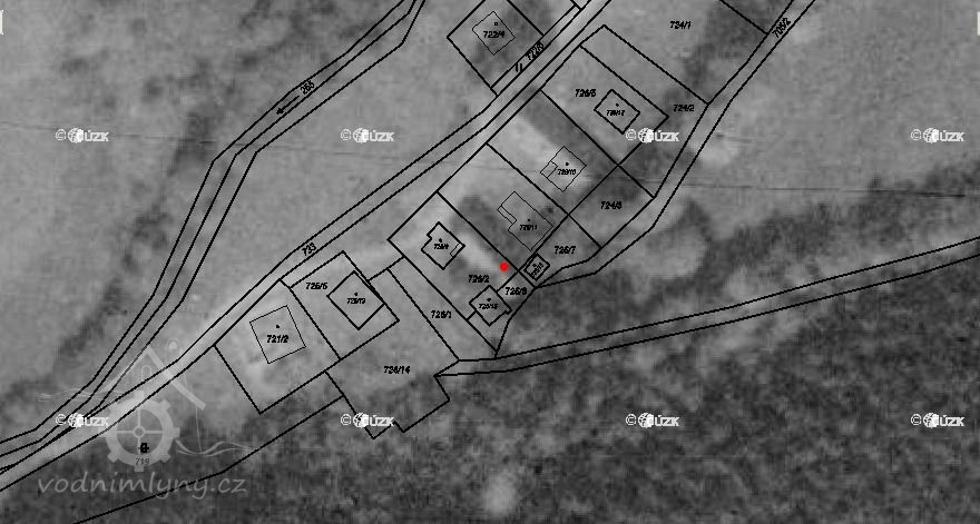 Zbořený mlýn, na jeho místě se nacházejí chaty ev. č. 52 a 53.