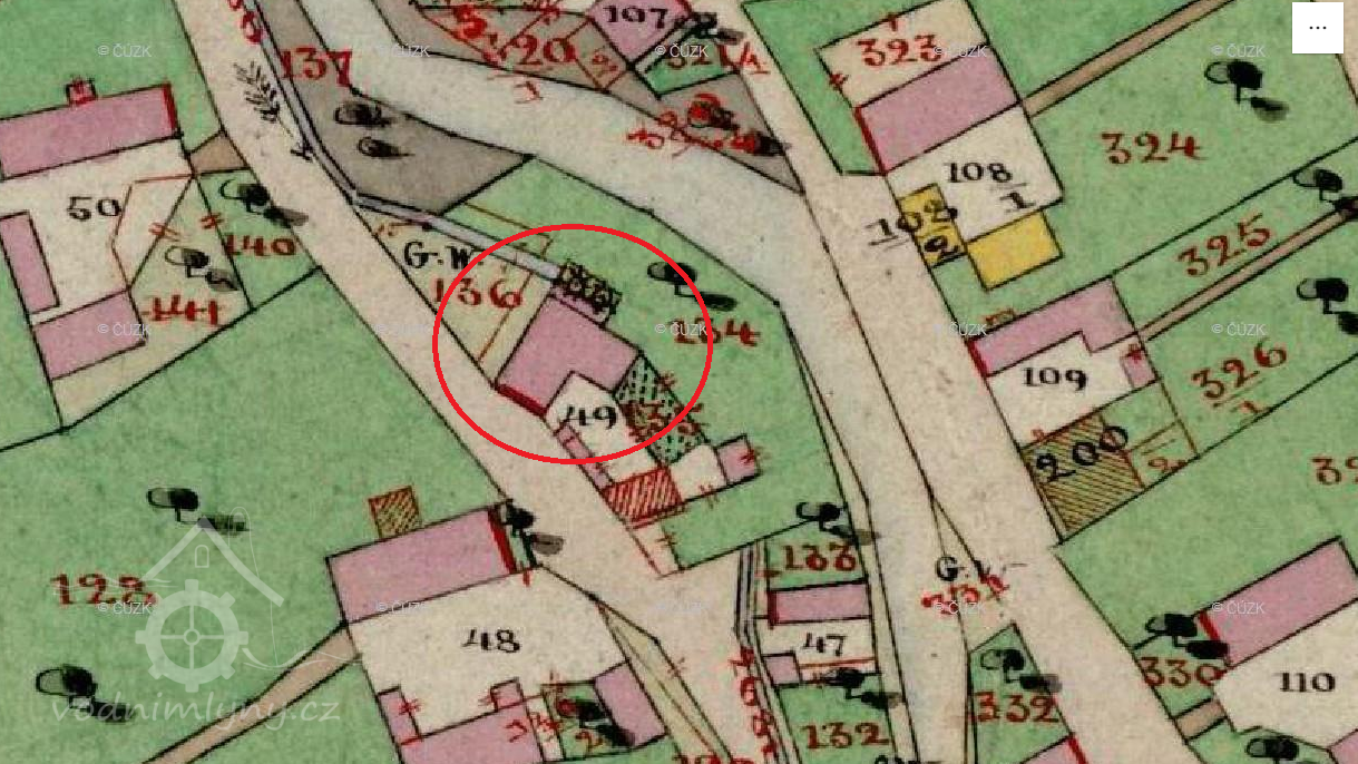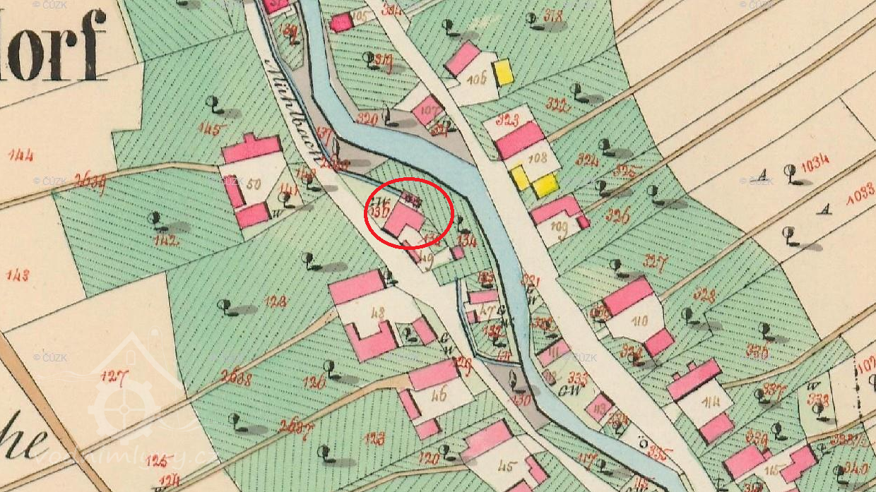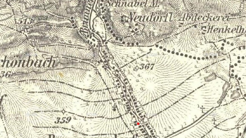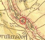 Zobrazen na mapě I. vojenského mapování.