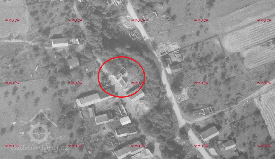 V roce 1964 měl mlýn ještě všechny střechy, v roce 1965 už střechu neměl, v roce 1975 už nebyl na leteckém snímku a místo se stalo stavbou.