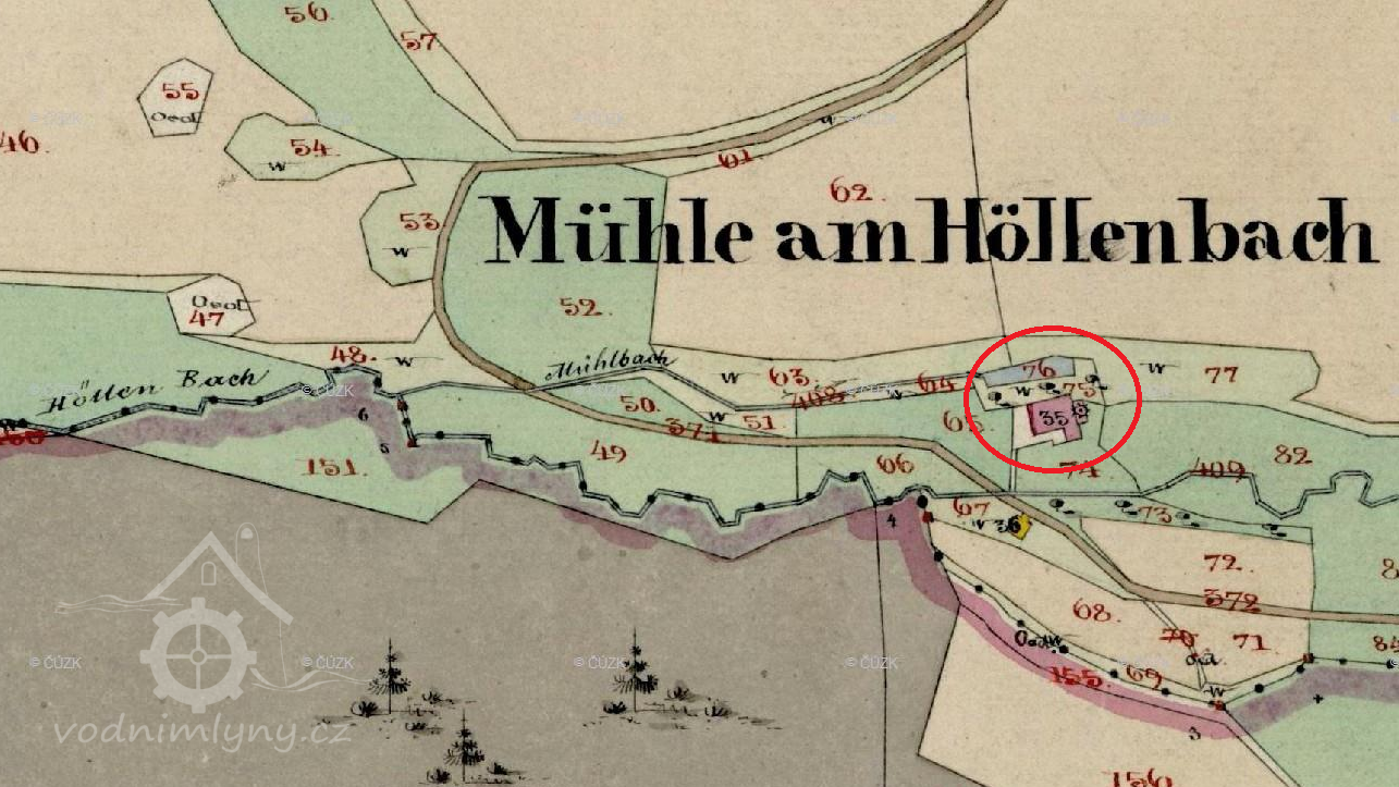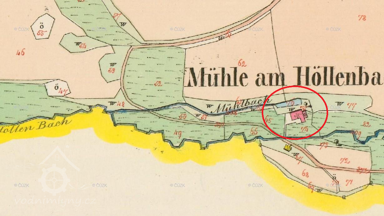 Mlýn zakreslen na mapě I. vojenského mapování.