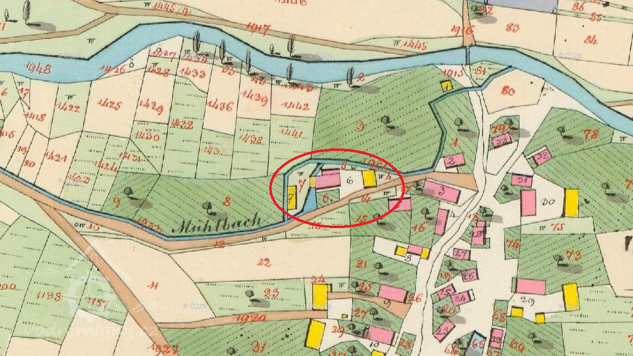 Na II. vojenském mapování vyznačen mlýn a pila.