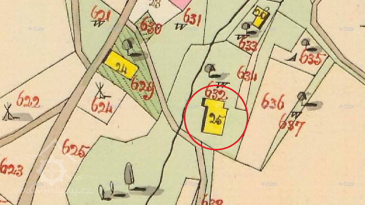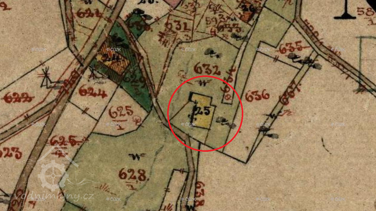 Vyznačen na mapě I. vojenského mapování. Na indikační skice zakresleno vodní kolo.