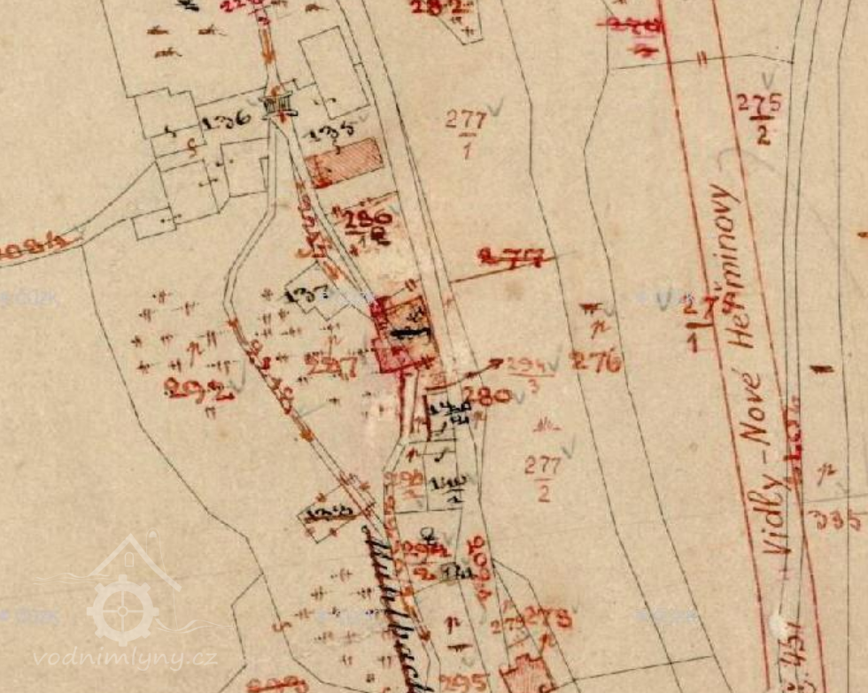 Popis1930 hospodářství: 1 kolo na svrchní vodu, hltnost 0,13 m3/s, spád 2,6 m, výkon 3 HP