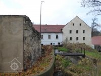 Zchátralá zadní část mlýna, v pozadí dvůr s obytnou budovou, 2015, © Helena Špůrová