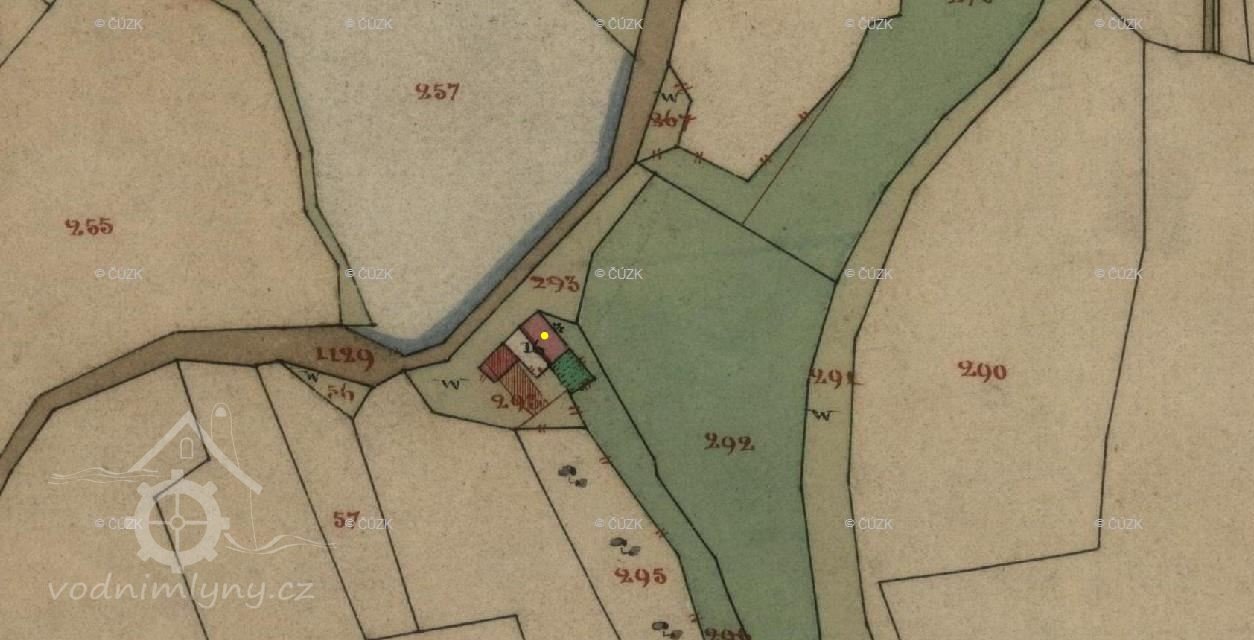 Popis1930: 1 kolo na svrchní vodu, hltnost 0,0867 m3/s, spád 5,78 m, výkon 4,6 m