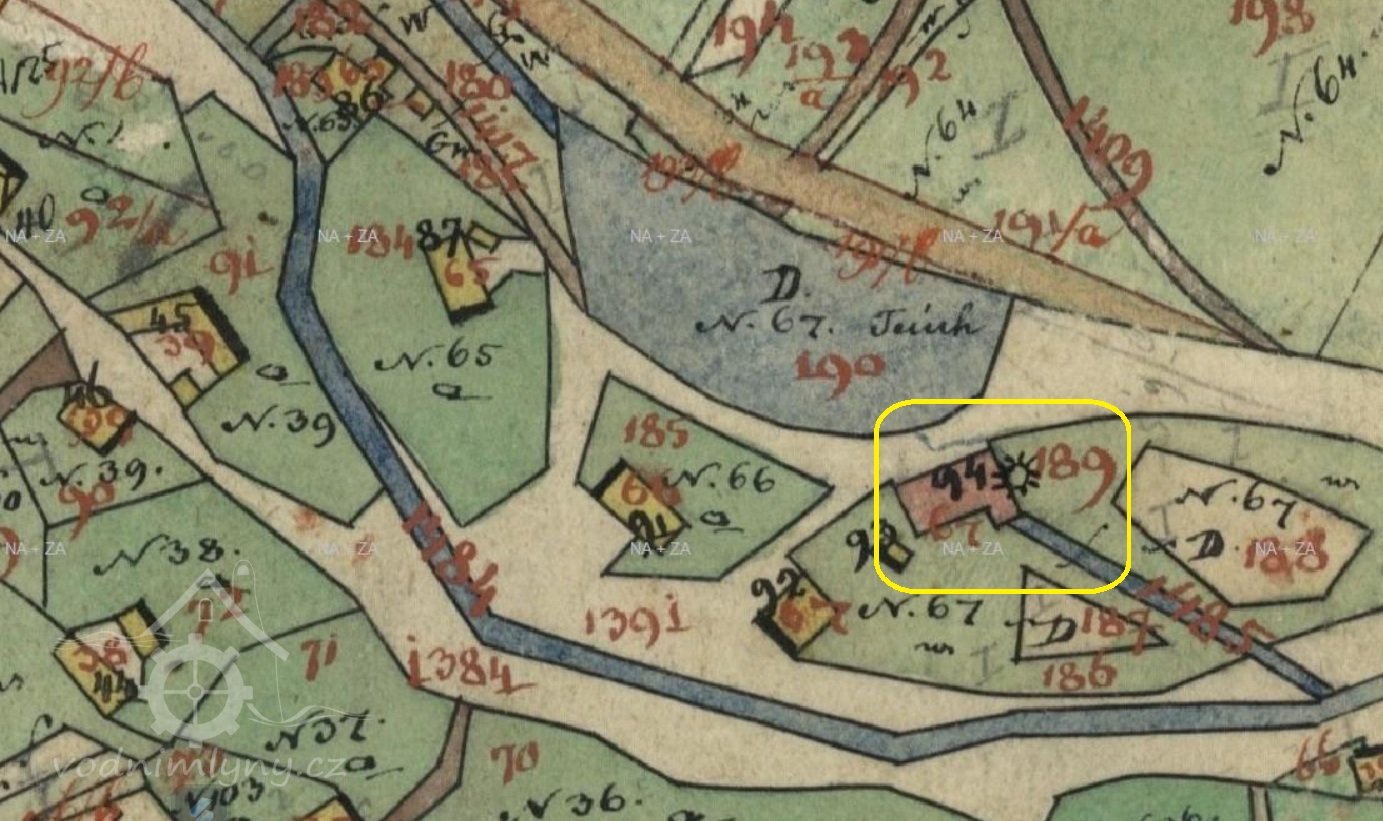 Rybník na mlýnem, náhon i odtokový kanál zasypány.