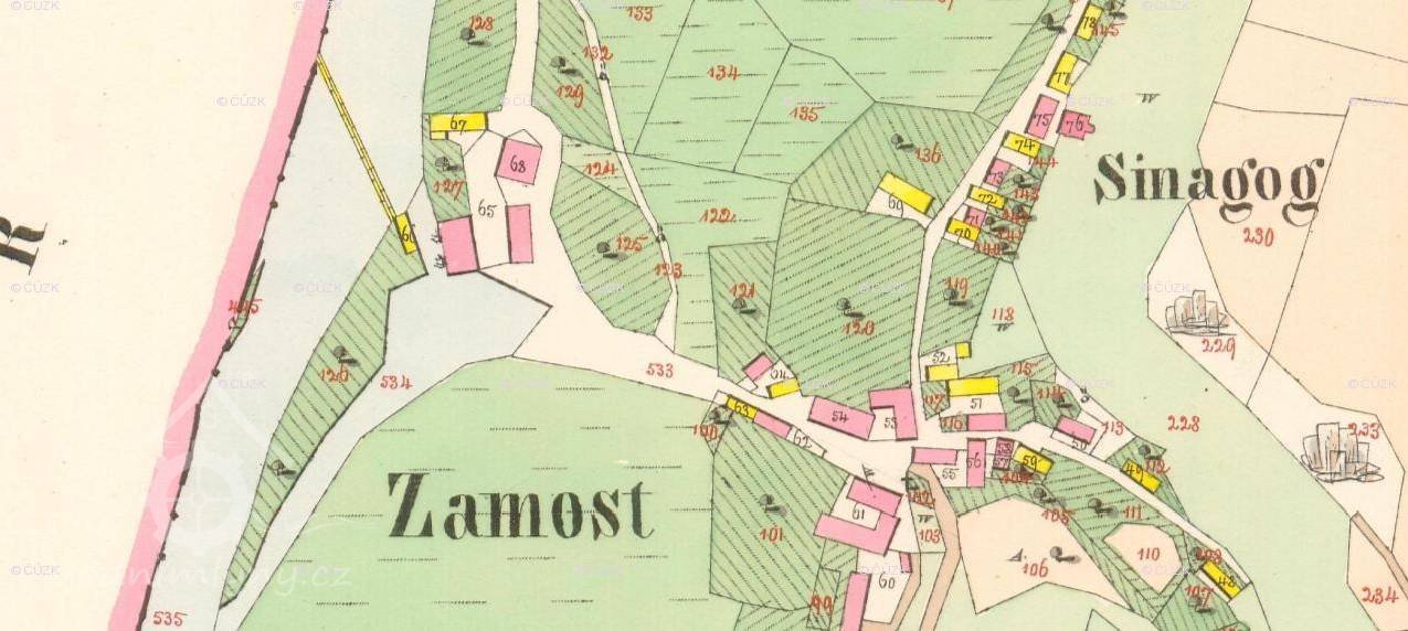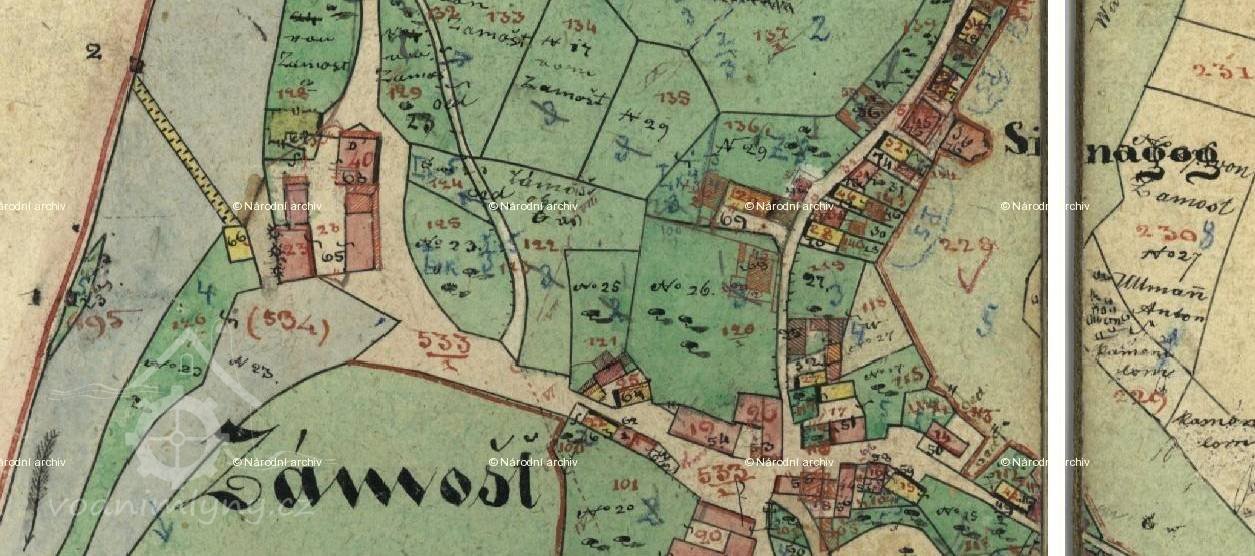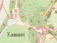 1414 Václav Myška z Hrádku postoupil mlýn a sladovnu v Zámostí v dluhu 100 kop Petrovi z Palohlav a z Křídy a jeho ženě Zdeňce, po jejich smrti připadly obě živnosti, role, louky, zahrada u mlýna, řeka a struha králi Jiřímu Poděbradskému.