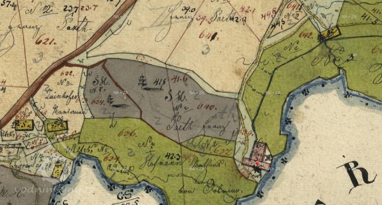 Mlýn s pilou starého založení, zbořený při budování hraničního pásma.