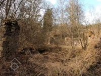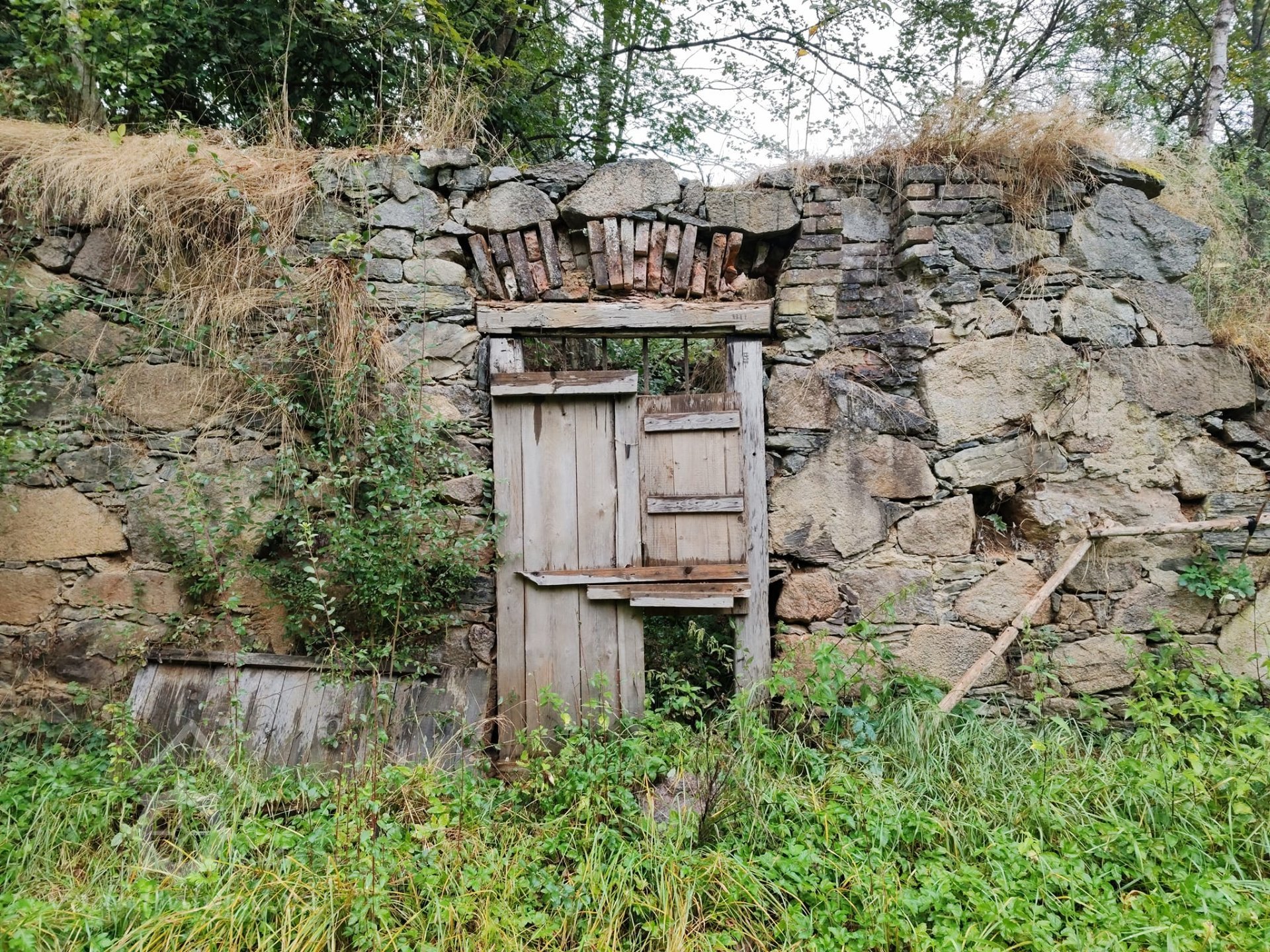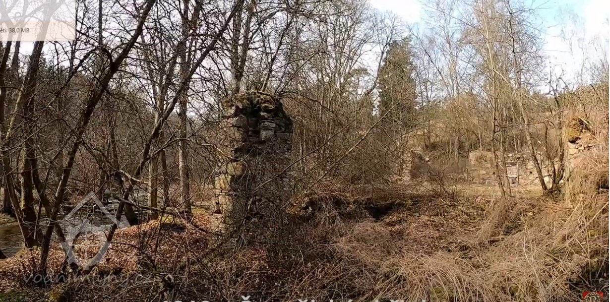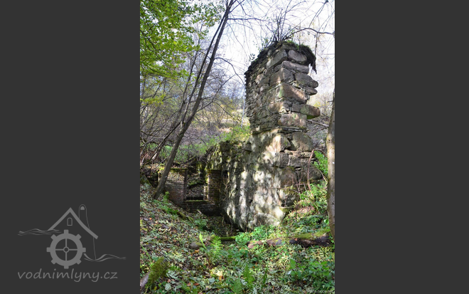 Zbořeniště. Mlýn po "odsunu" jeho majitele George Floßmanna zničila v šedesátých letech armáda.