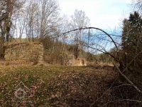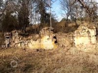 Dochováno mohutné jz nároží vyzděné z hrubě opracovaných kvádrů a propadlé sklepy.
