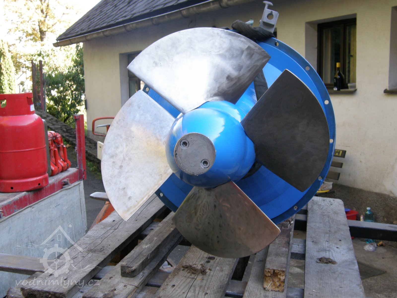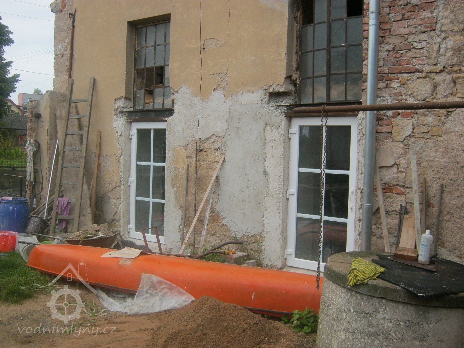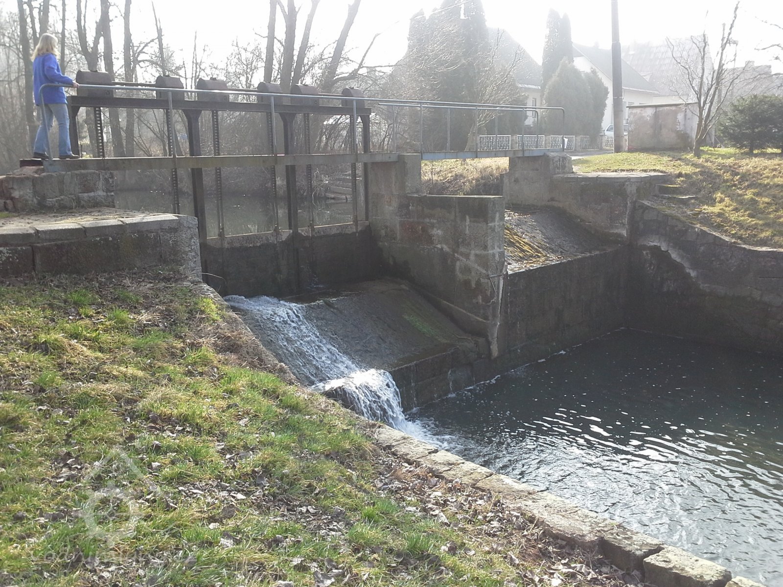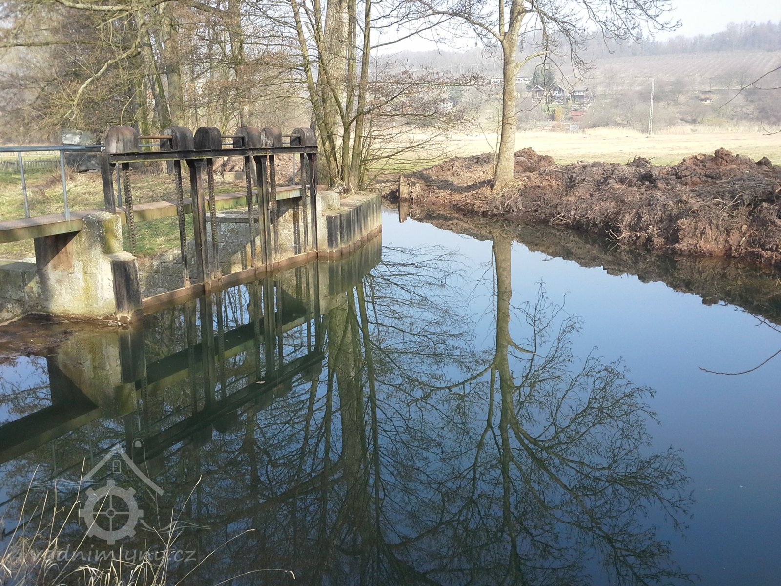 Dlouhý náhon s průtokem 800l a spádem 0,2 m.