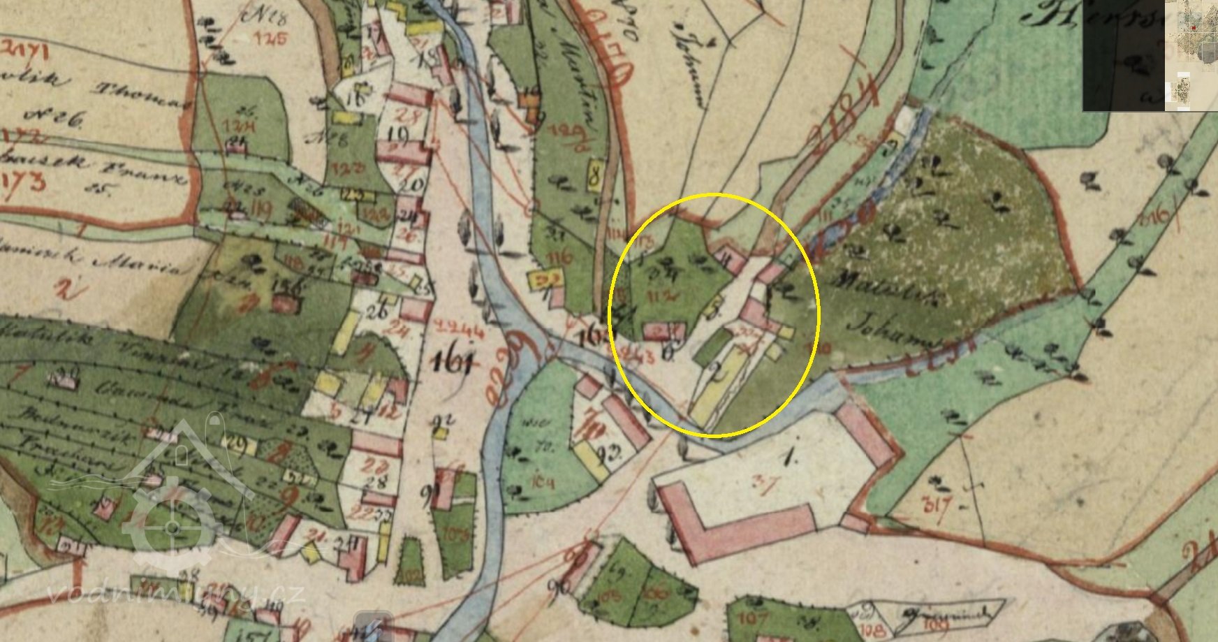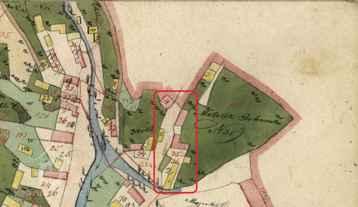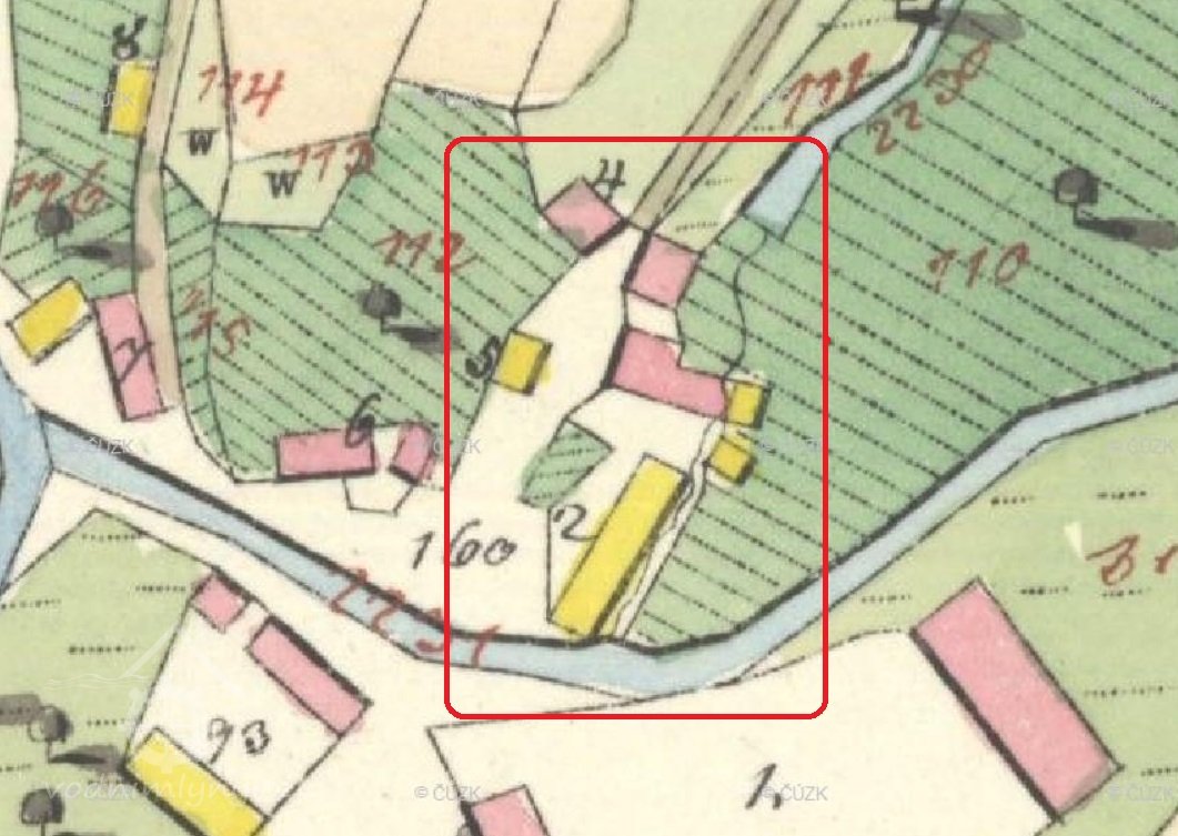Mlýnský stav stával u Podhradí, odtud šla voda strouhou k náhonu do míst domů č. 103 a č. 35.