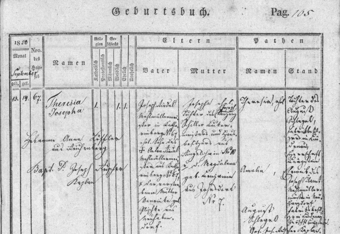 V 50. letech 19. století provozoval mlýn stále mlynář Josef Riedel s manželkou Josefou. V matrikách je uváděno ještě narození 2 dcer Theresie (1850) a Anny Theresie (1854). Poslední uváděná dcera Anna Theresia se v dospělosti provdala za mlynáře Juliuse Breuera hospodařícího na mlýně v obci Machnín čp. 6.