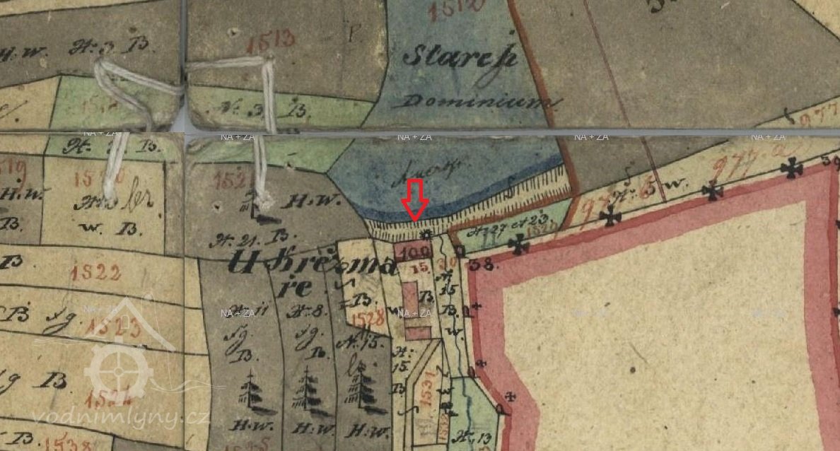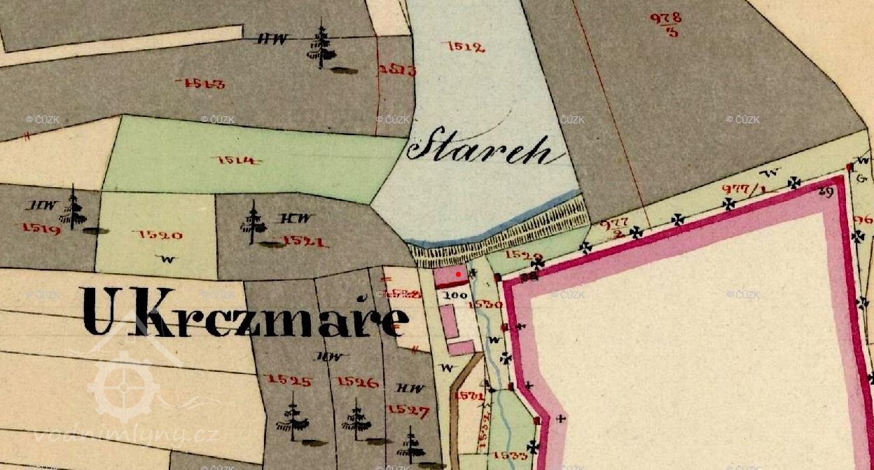 Menší mlýn starého založení pod hrází Starého rybníka.