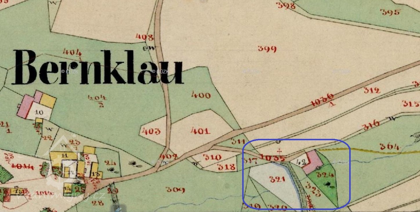 Jediný z trojice zaniklých bezvěrovských mlýnů, který se prozatím podařilo lokalizovat.