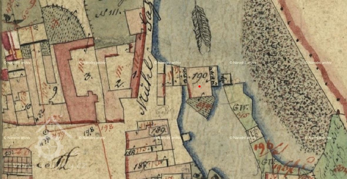 1590 rajonizace: Pavel Hrzek, má mlejn na téže řece o 4 kolech moučných a 1 pile, u mlýna 1 1/2 čtvrti pole a loučnýho do 2 for, šacován se vším na 750 kop, ročně platí ouroku 6 kop 8 gr., berně 11 kop 33 gr., žita vejmelnýho nově 8  str. Pozn.: kníže koupiti