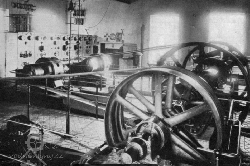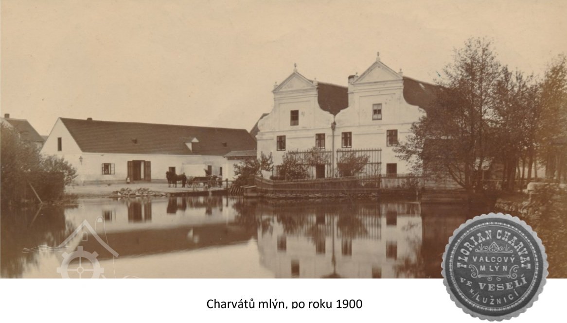 Florián Charvát, 1911-12 zrušil 2 vodní kola na východní straně mlýna a místo nich instaloval Francisovu turbínu o výkonu 60 HP na druhé straně mlýna vystavěl elektrárnu, 1912 uvedenou do provozu. Celkové náklady 184.000 K.