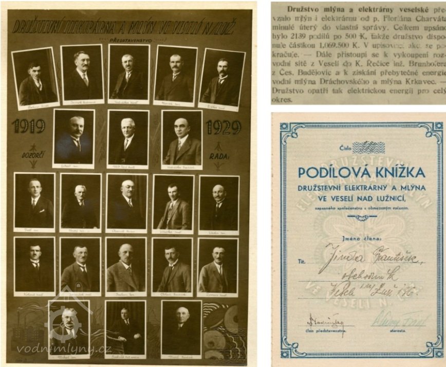 Po I. světové válce Florián Charvát nabídl mlýn a elektrárnu rolníkům veselského okresu, na členských podílech získáno 1.346.000 Kč a v srpnu 1919 zakoupen mlýn, elektrárna a elektrorozvodné sítě ve Veselí a Mezimostí za 1.200.000 Kč. Předsedou družstva  zvolen MUDr. Adolf Fürst, funkci zastával až do roku 1946. V předstvenstvu dále Jan Líkař, František Vodrážka, Florián Charvát aj.