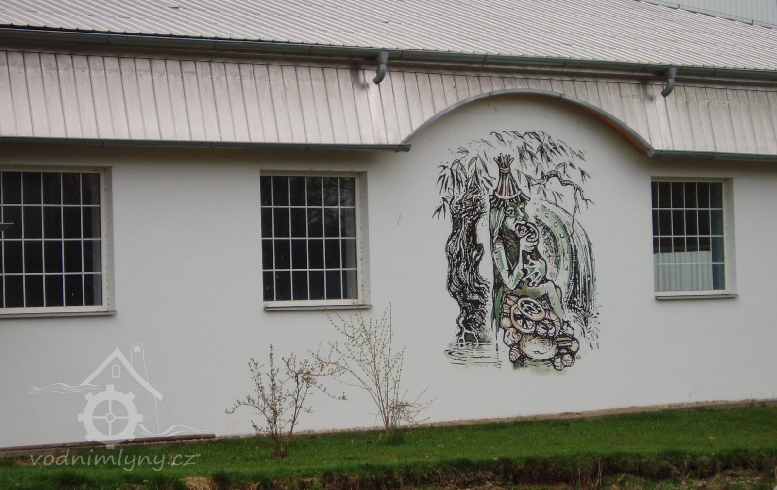 Mlýn s turbínou, který vyrábí elektřinu a mele