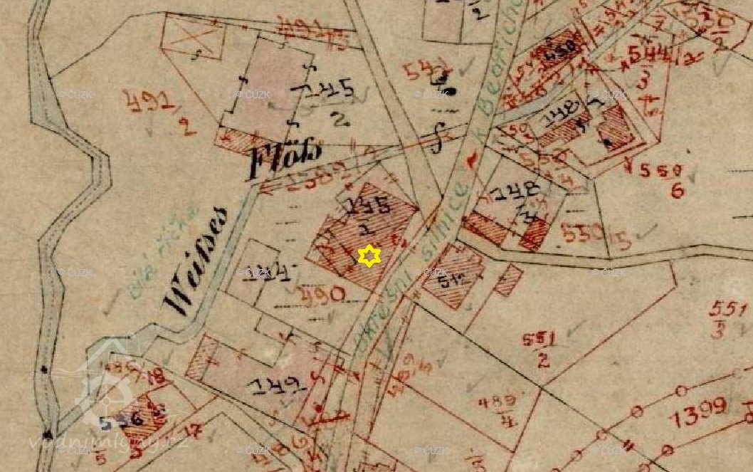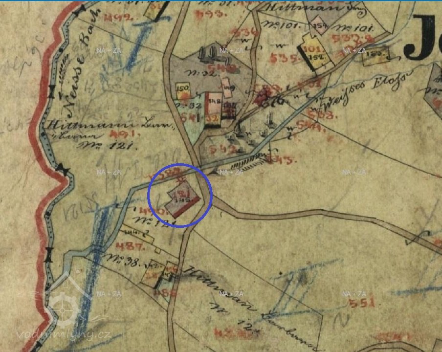 Na mapě II. vojenského mapování zakreslen nad mlýnem rybník, na katastrálních mapách však není.