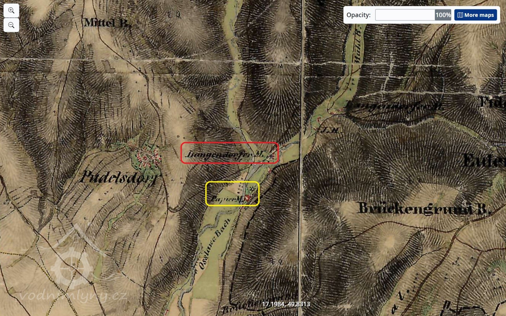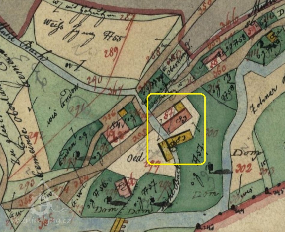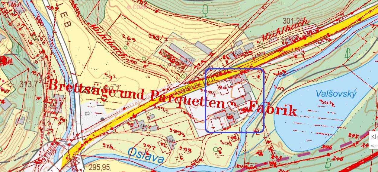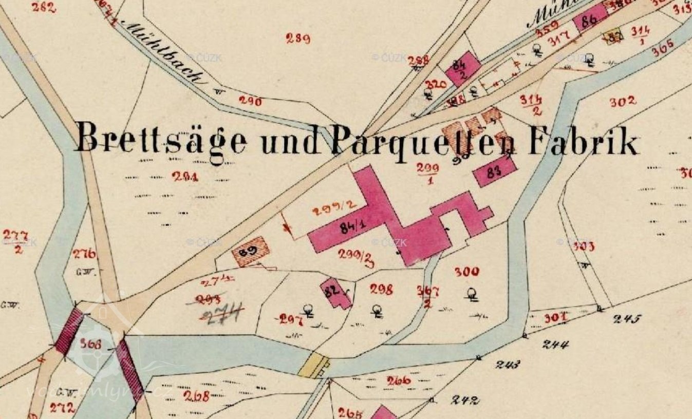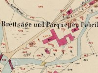 Mlýn přestavěný na pilu a továrnu na parkety, třetí ze čtveřice vodních děl ve Valšově Dole, pod ním ležela ještě papírna čp. 55.