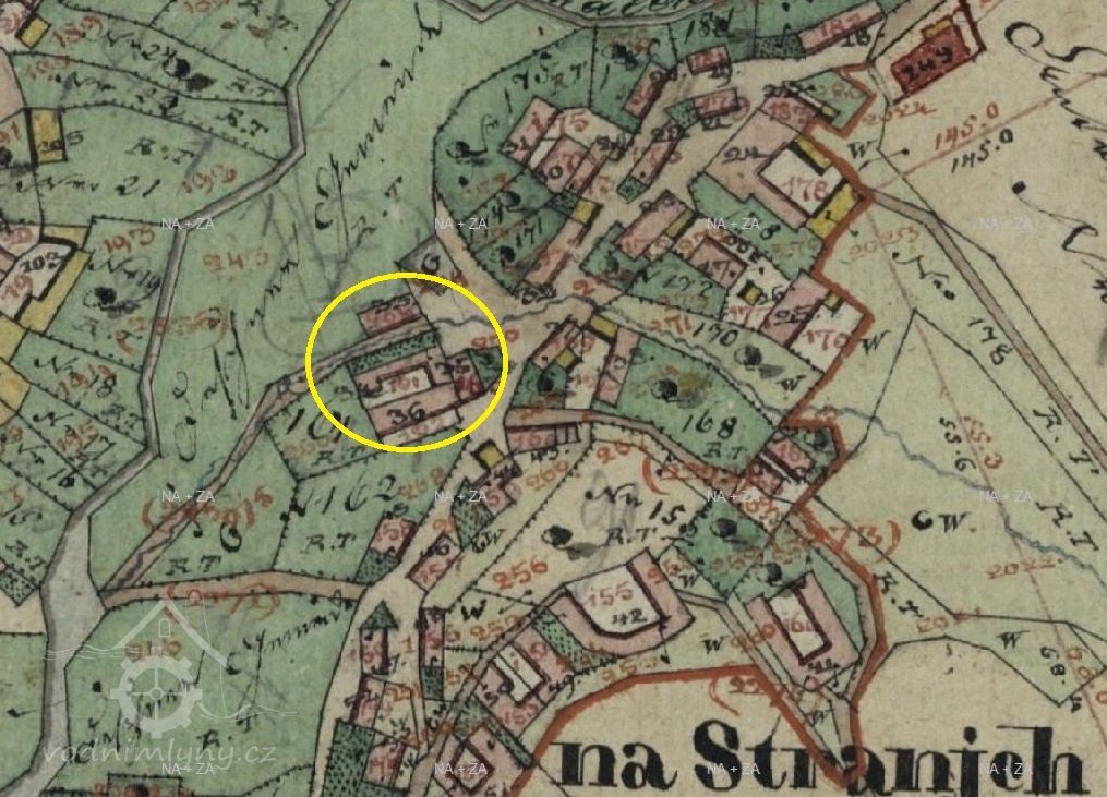 Mlýn na předměstí Stráně, doložený k roku 1567, zanikl patrně na začátku 19. stol., je však zakreslen ještě na mapě II. vojenského mapování. Stával mezi čp. 204 a 275 v místě zvaném Na Žabárně nebo Na Moučkovině.