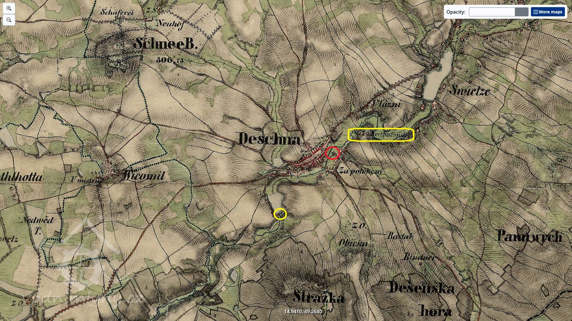 300 m sv od kostela sv. Ottona v Deštné