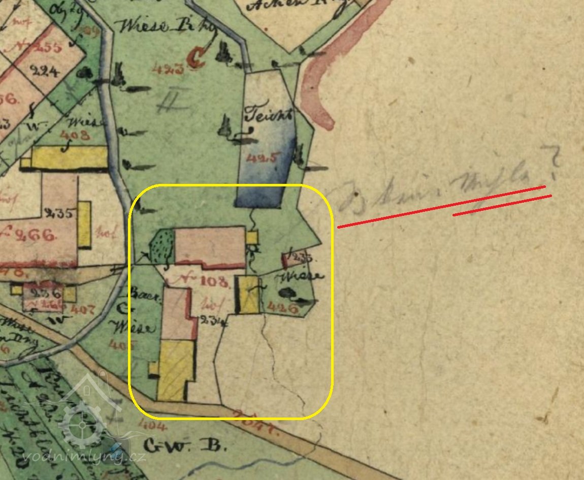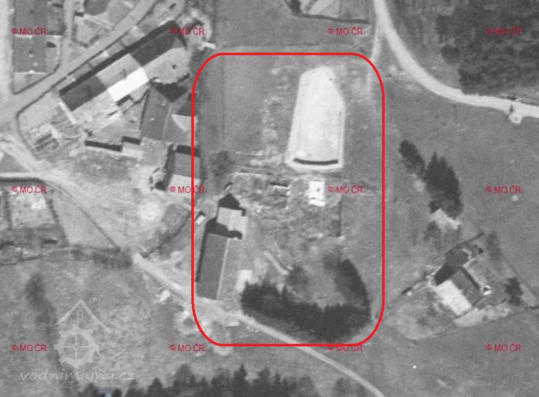 Zaniklá akumulační nádrž nad mlýnem, 1954 po zániku mlýna obnovena, před 1990 opět zrušena.