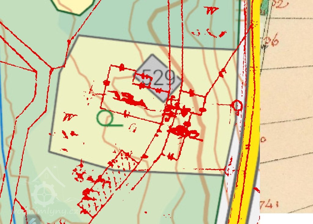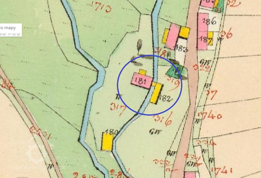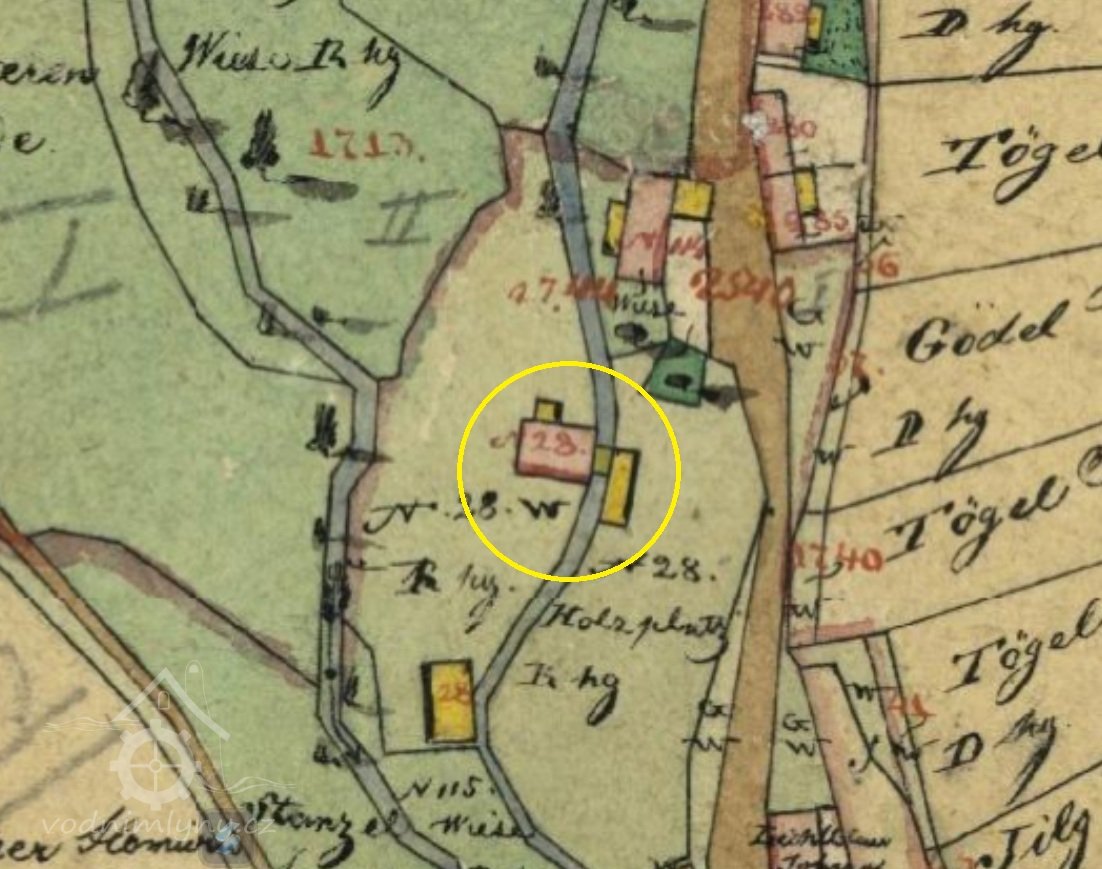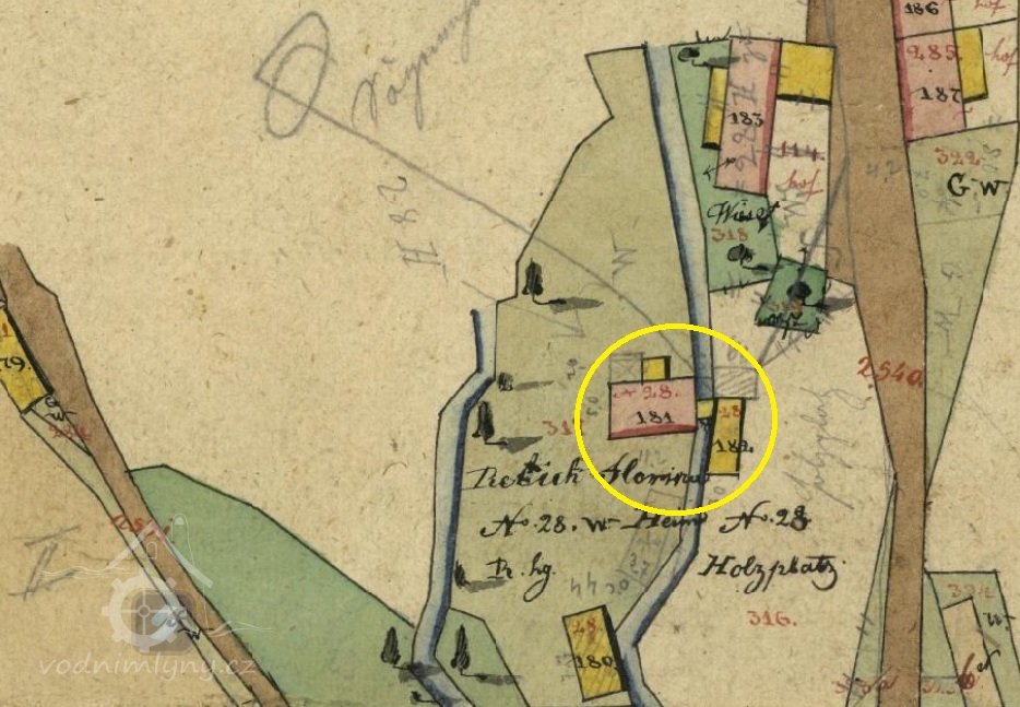 Na indikační skice z roku 1834 označen jako sagemühle tj. pila (dopsáno dodatešně tužkou), kterou vlastní Florian Rebick.