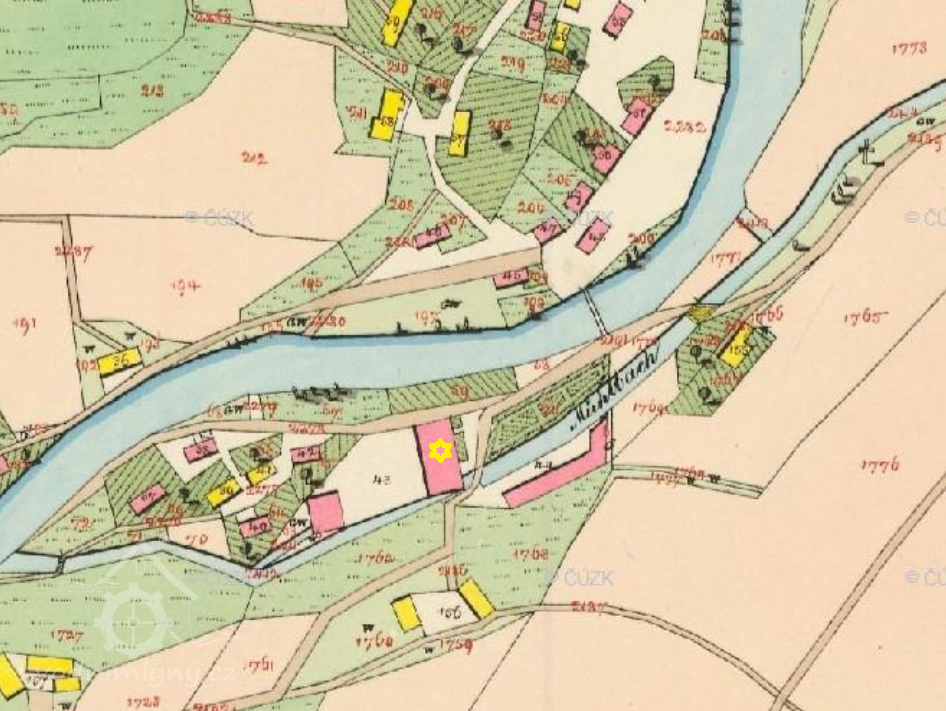 Mlýn založený v roce 1848, v 80. letech 19. stol. přestavěn na papírnu bratří Soyků. Dnes E 33 s.r.o., výroba dřevěných oken.