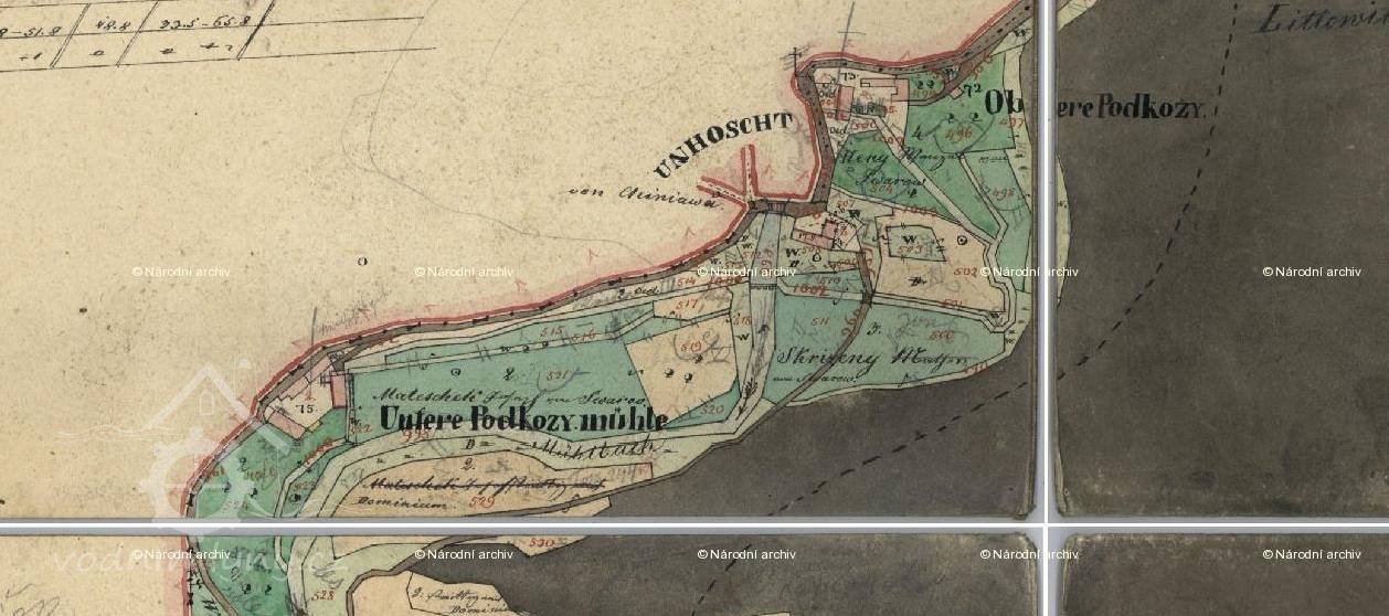 Paradoxem je, že Horní Podkozský mlýn je v Dolním Podkozí a Dolní Podkozský mlýn zase v Horním Podkozí, mlýny jsou nazvány totiž podle toku potoka.