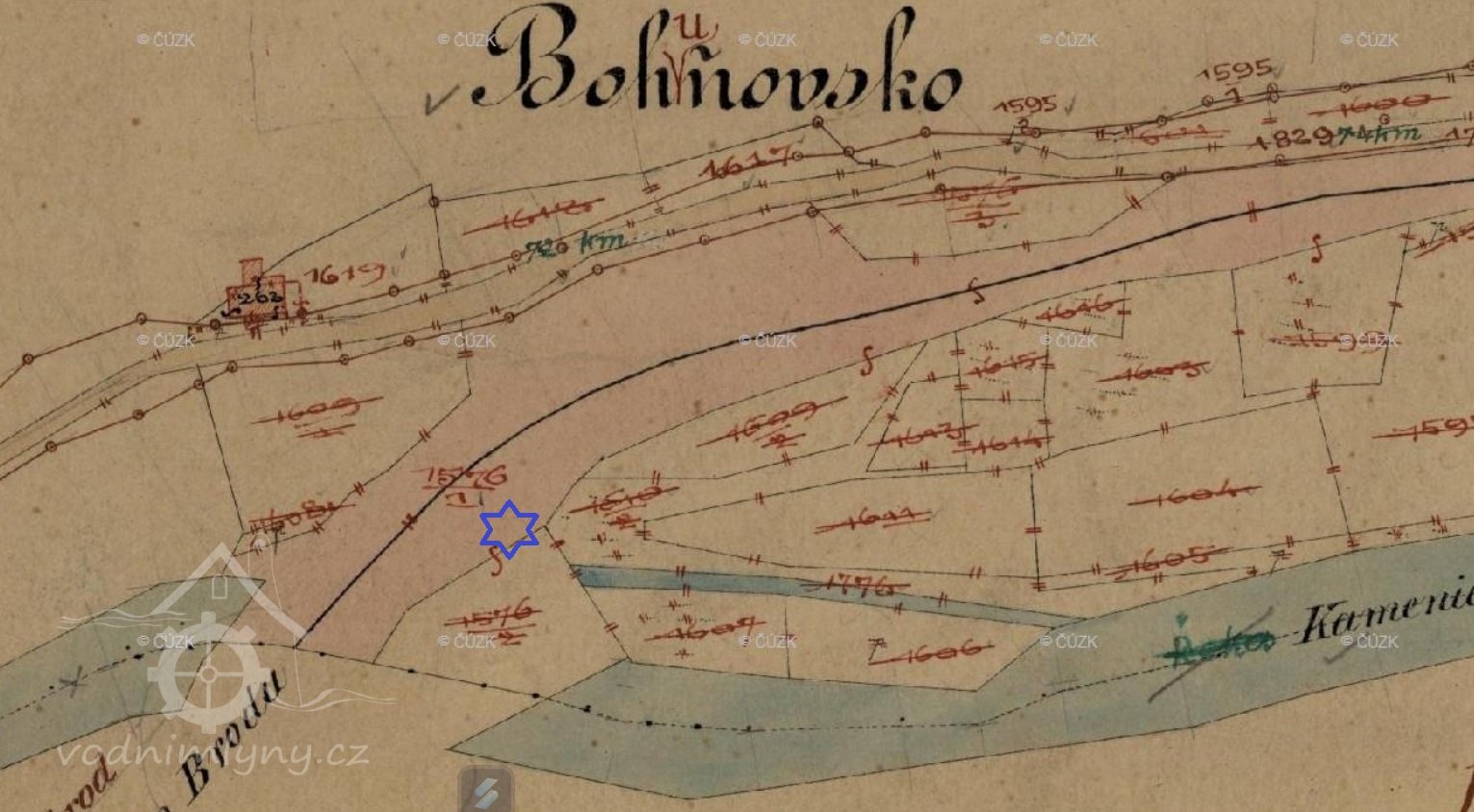 Starší malý mlýn na Kamenici, zbořený před rokem 1875 před stavbou železniční trati Železný Brod - Tanvald, která zde podle původního projektu měla překračovat Kamenici.