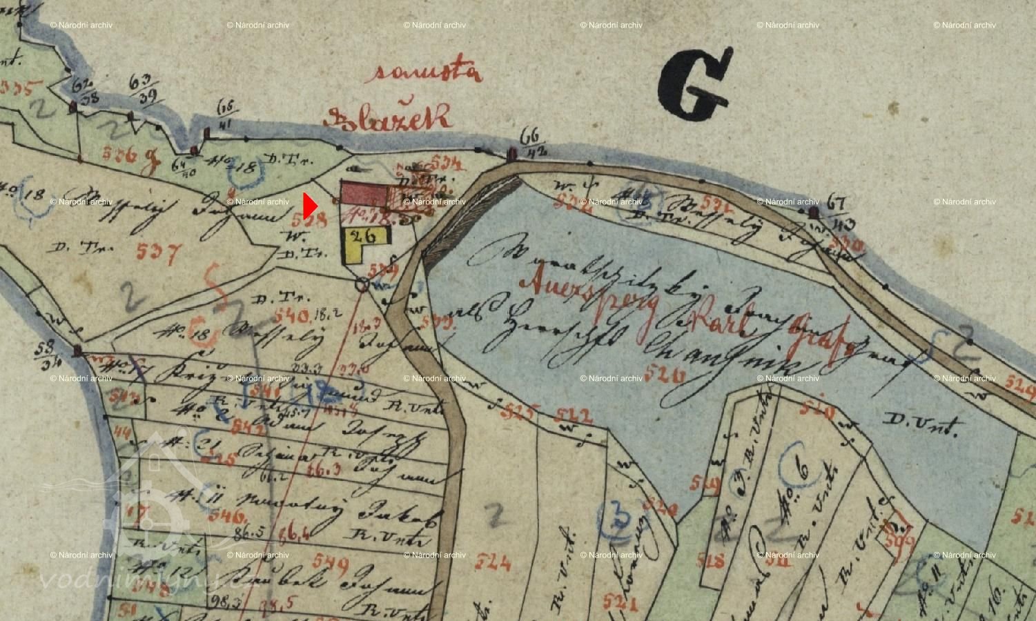 Mlýn, stoupy rybník č.parc.529 přináleží vlastnictvím dle pozemkové knihy tento hraběti Karlu Auerspergovi a mlýni stoupy manželům Václavu a Barboře Veselým.