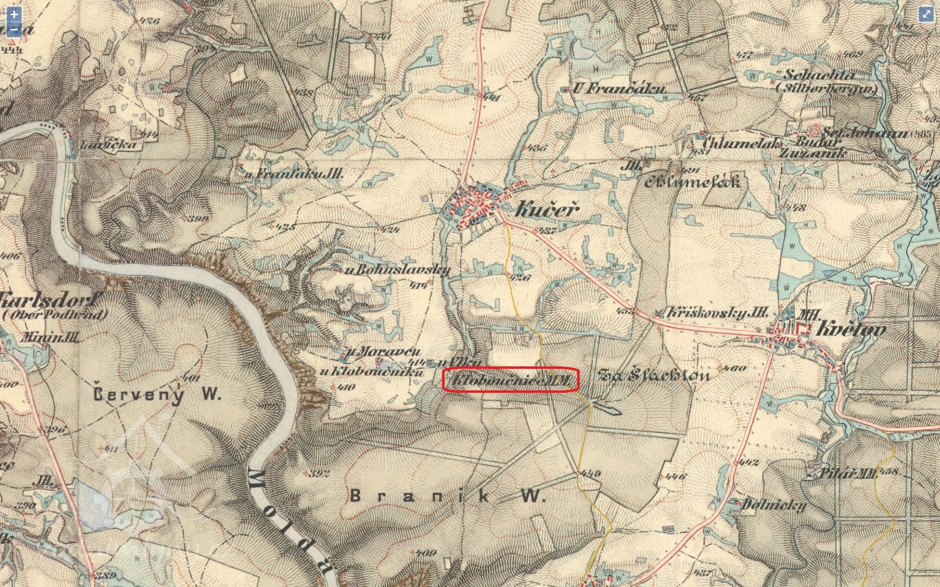 1,3 km jižně od kaple sv. Václava v Kučeři