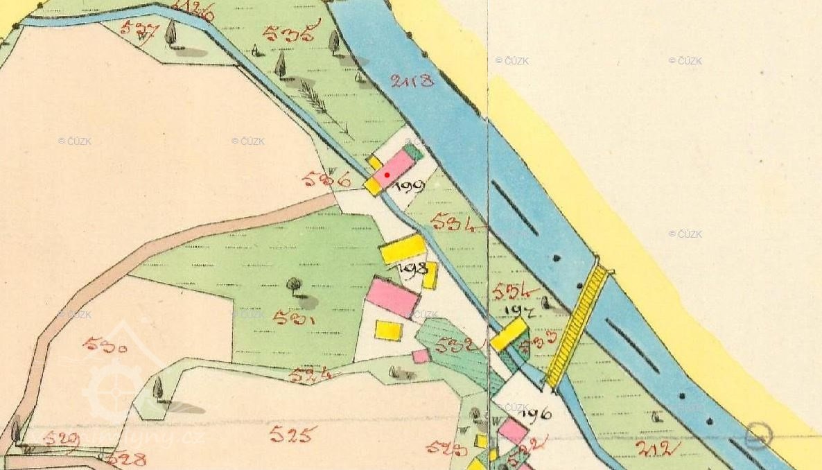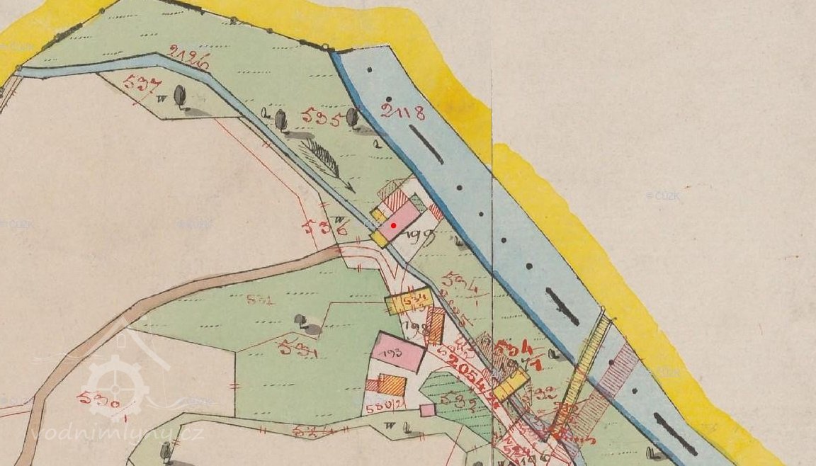 PopisV roce 1930 pohání továrnu na zátky Francisova turbína s průtokem 0.79 m3/s, spádem 4 m o výkonu 23 HP.