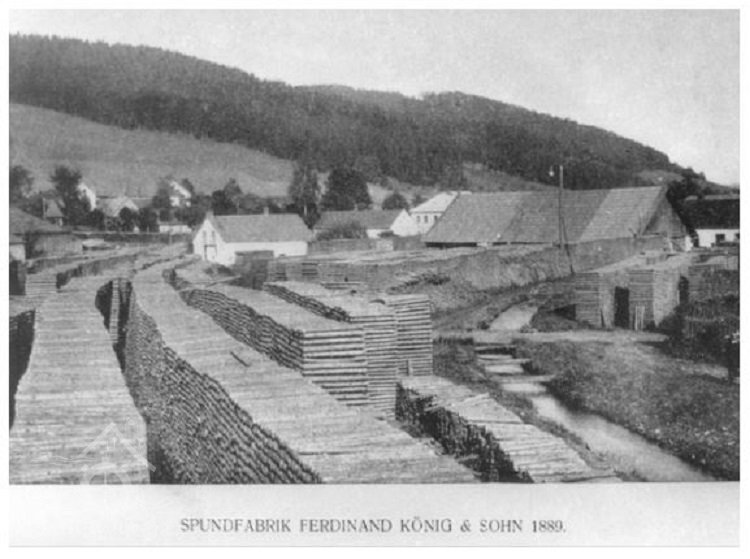Ferdinand König, původně z Nové Lublice okr. Opava, se do Vrbna pod Pradědem přistěhoval se svou ženou Marií a roce 1889 založil firmu "Ferdinand König a syn - továrnu na výrobu korkových a dřevěných zátek" s malou pilou ve Vrbně pod Pradědem.