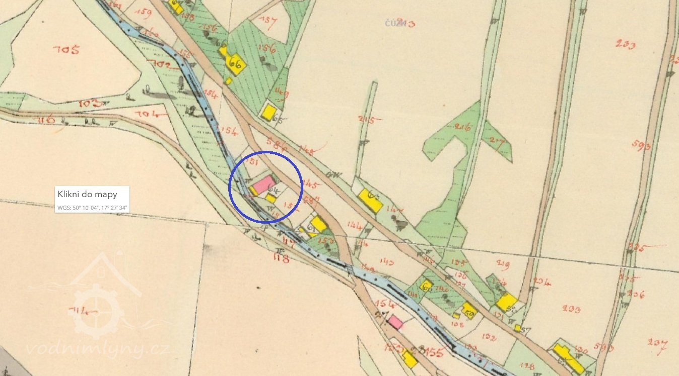 Popis1930: 1 kolo na svrchní vodu, hltnost 0,048 m3/s, spád 6 m, výkon 2,5 HP