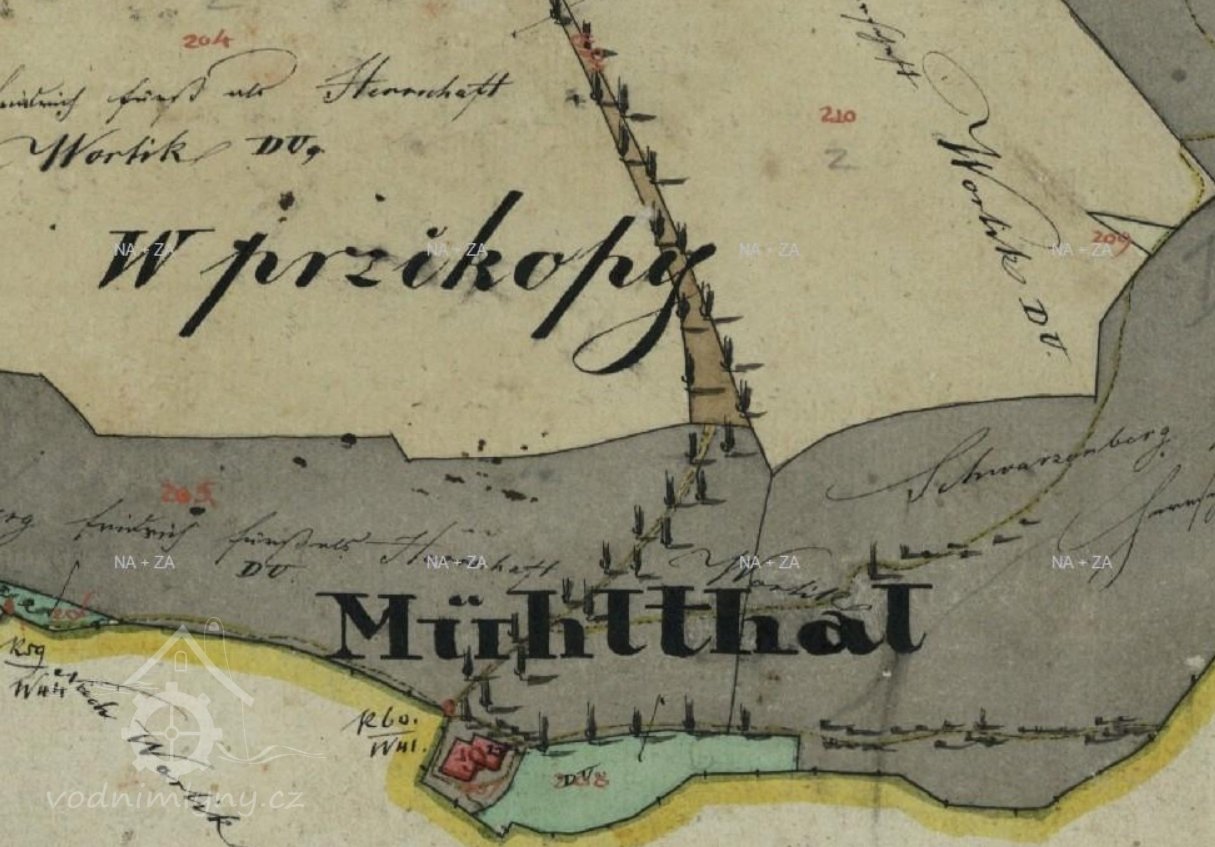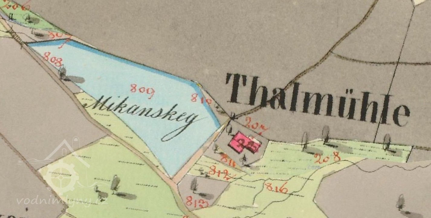 Zcela zaniklý mlýn pod Míčanským rybníkem, patrně příslušenství sousedního panského dvora.