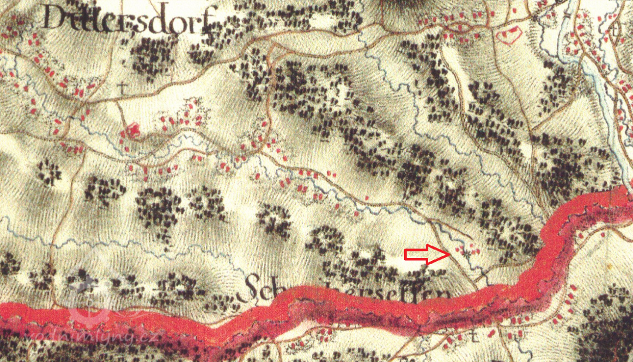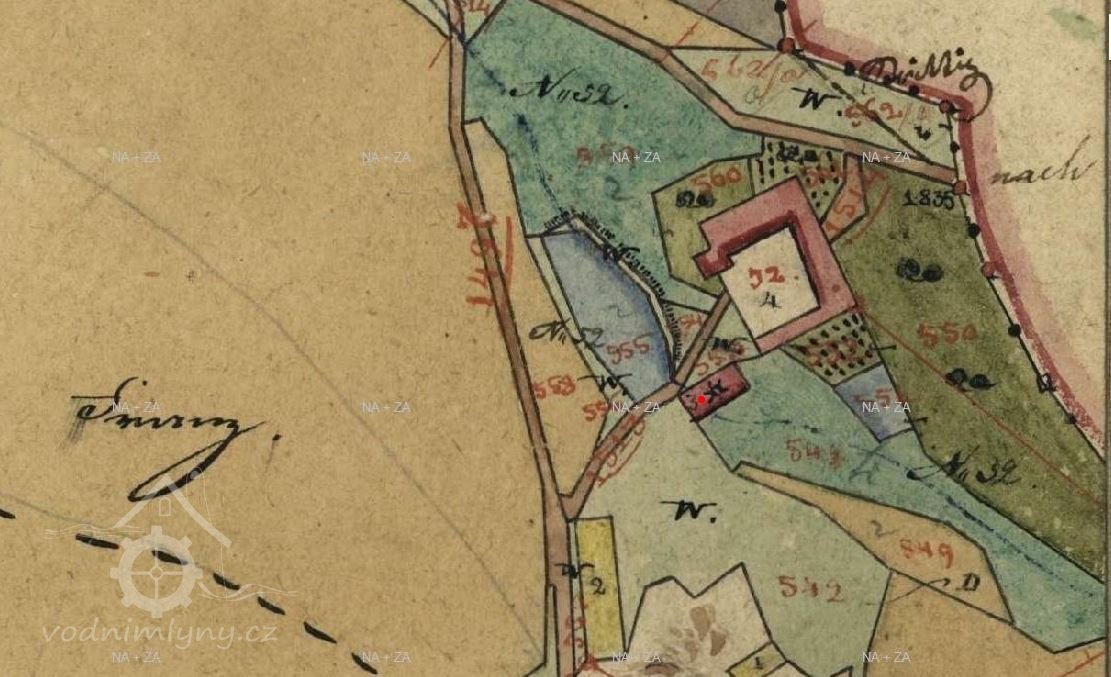 Mlýn je zachycen již na mapě I. voj. mapování.
