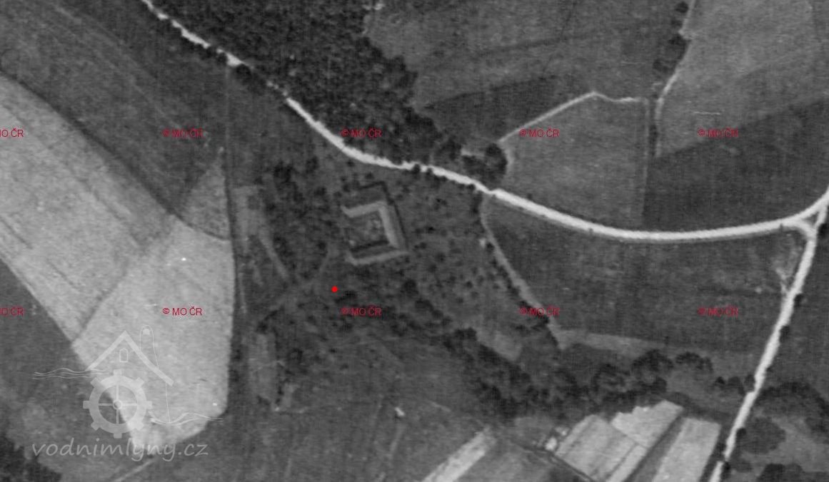 Malý mlýn při velkém hospodářství, zbořený po 2. sv. válce.