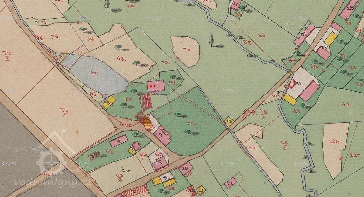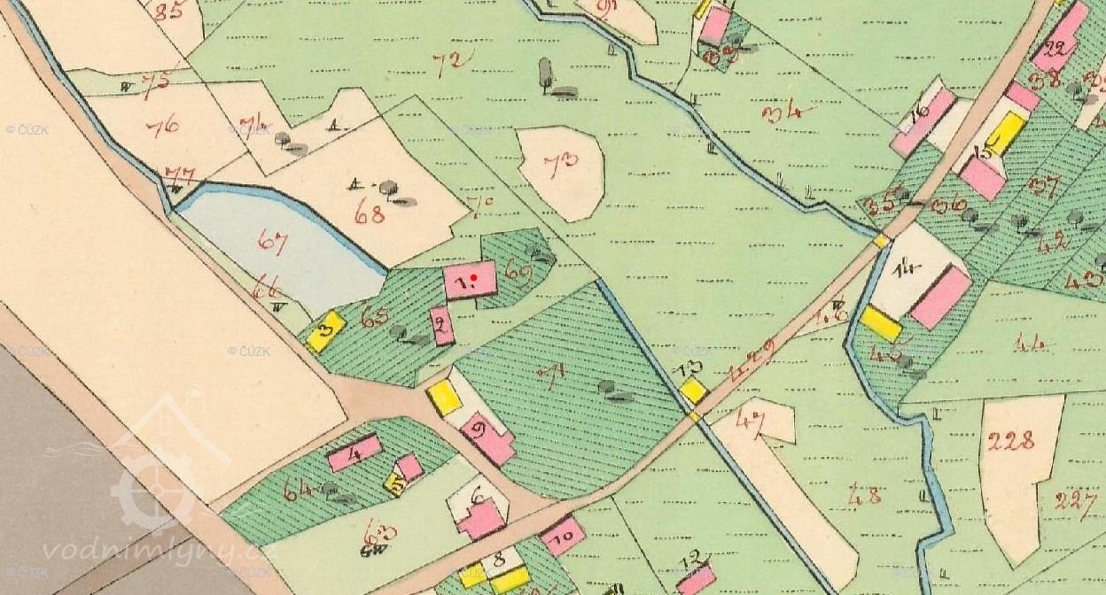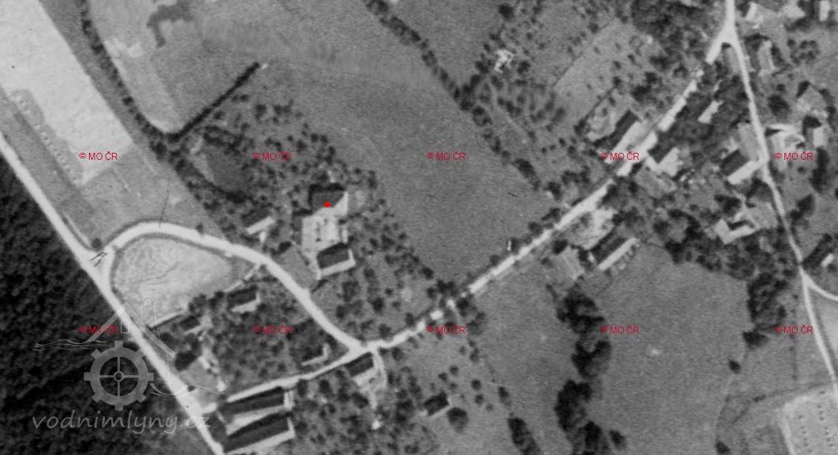 Mlýn stával pod hrází malého rybníka, který byl zrušený v době demolice mlýna.