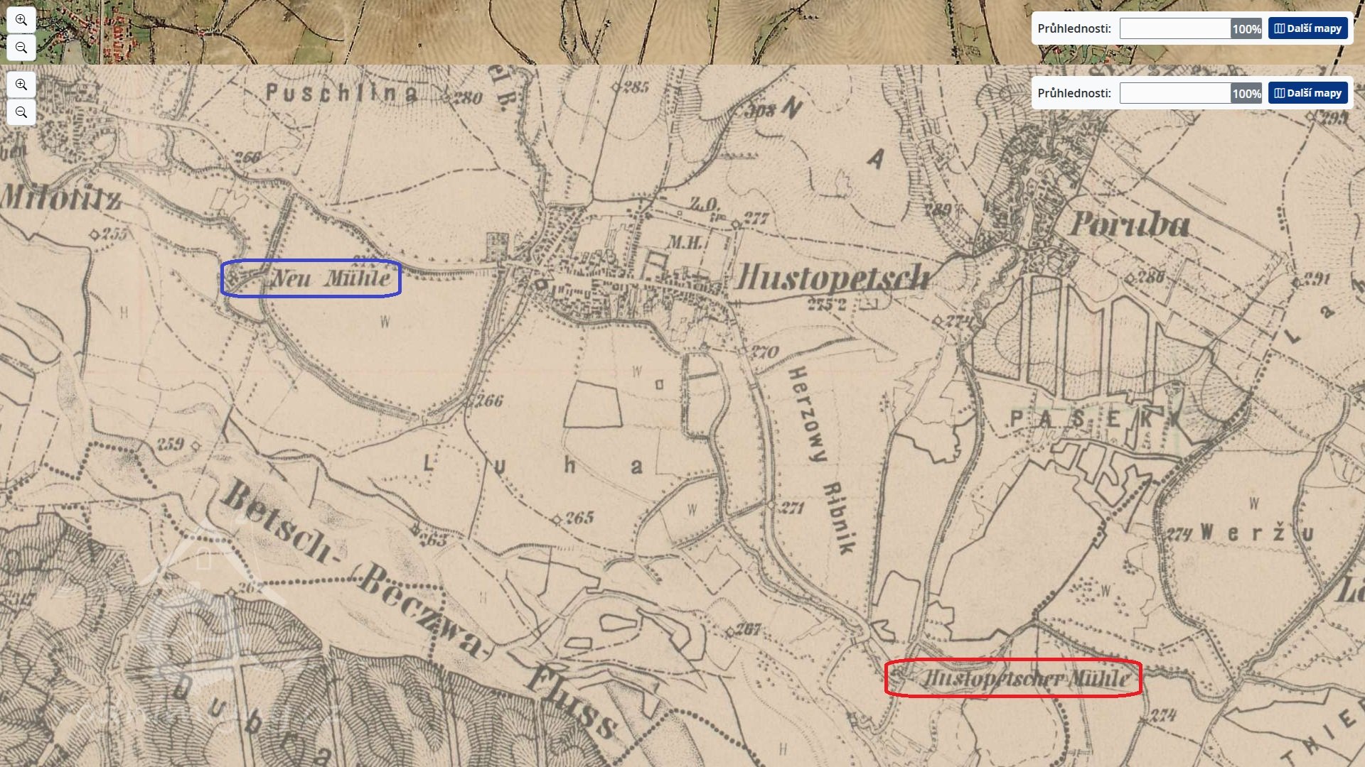 Velký lesní rybník nad mlýnem, dnes 4,5 ha, původně však cca 50 ha.
