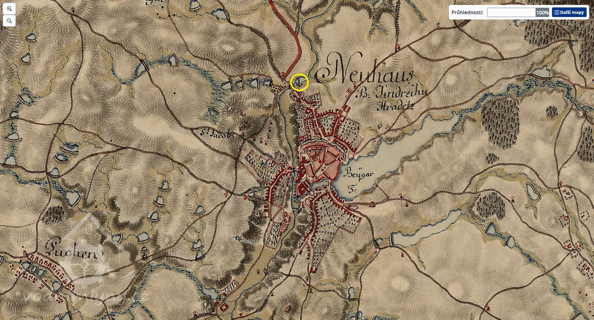300 m sz od kostela sv. Kateřiny v Jindřichově Hradci
