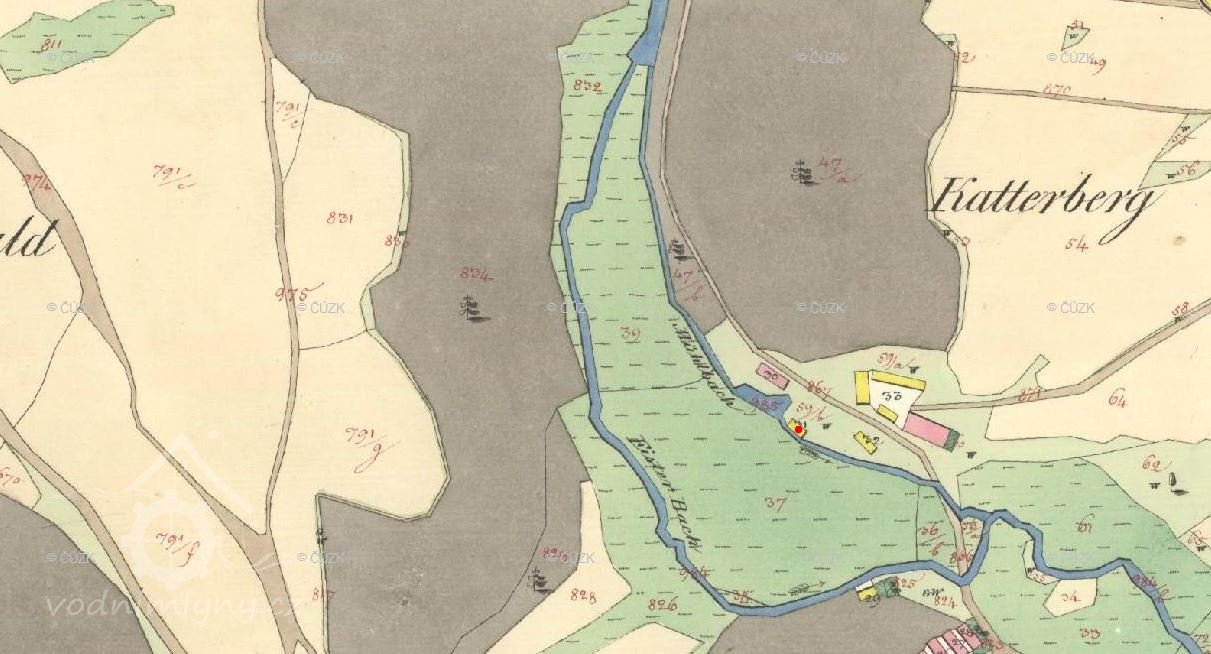V roce 1890 je mlýn sice stále veden pod čp. 20, ale má jiného vlastníka, než zbytek hospodářství. V roce 1890 mlýn vlastní mlynář Franz Pesth narozen 1831, zatímco hospodářství vlastnil Paul Berger.