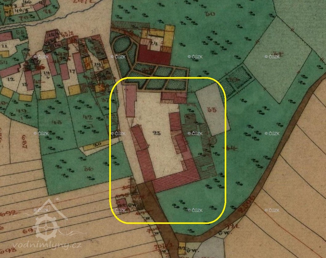 Mlýn zřízený 1866 v Úlickém dvoře, přesná poloha není známa.