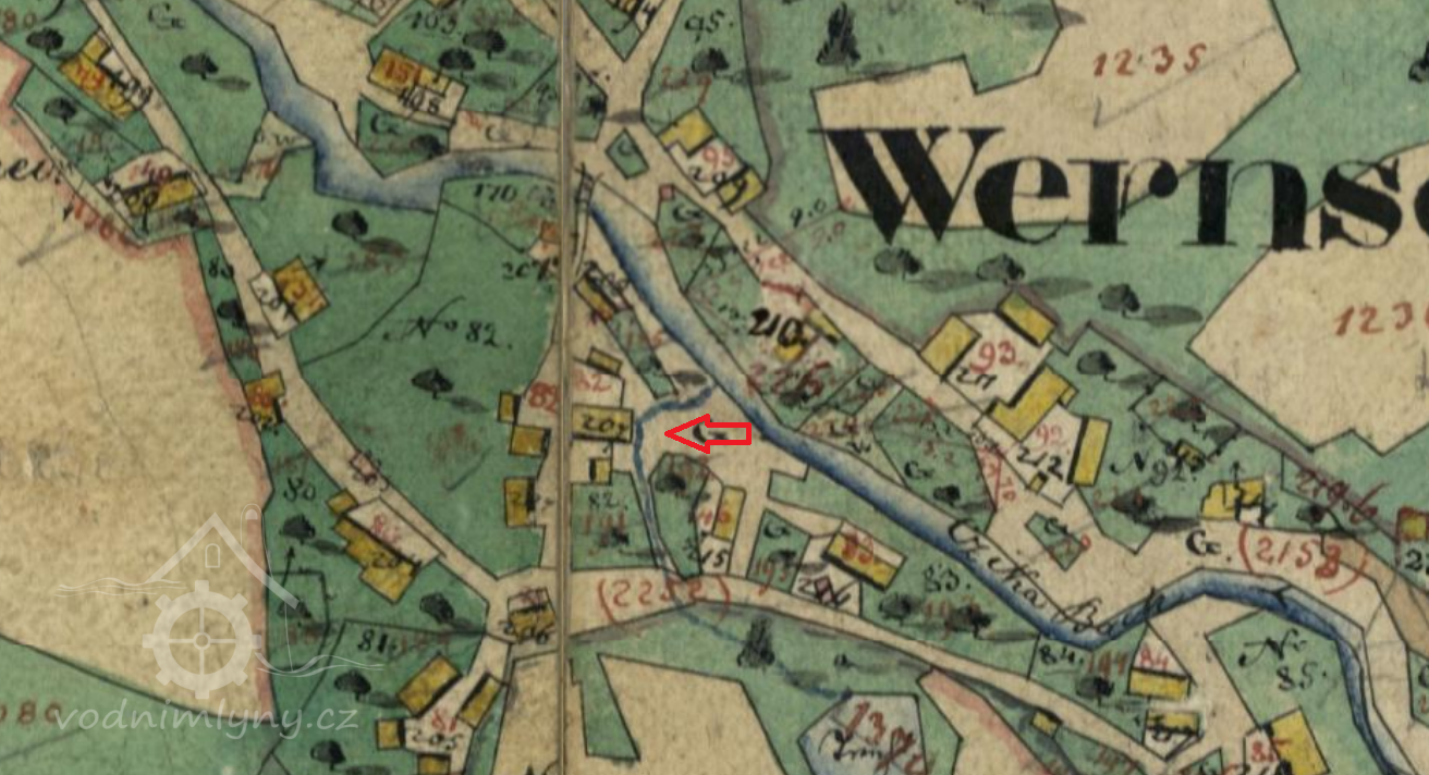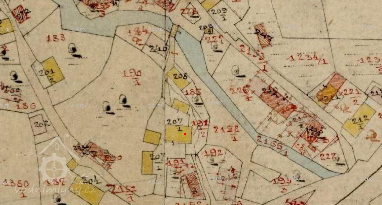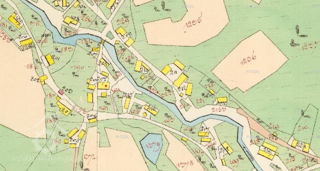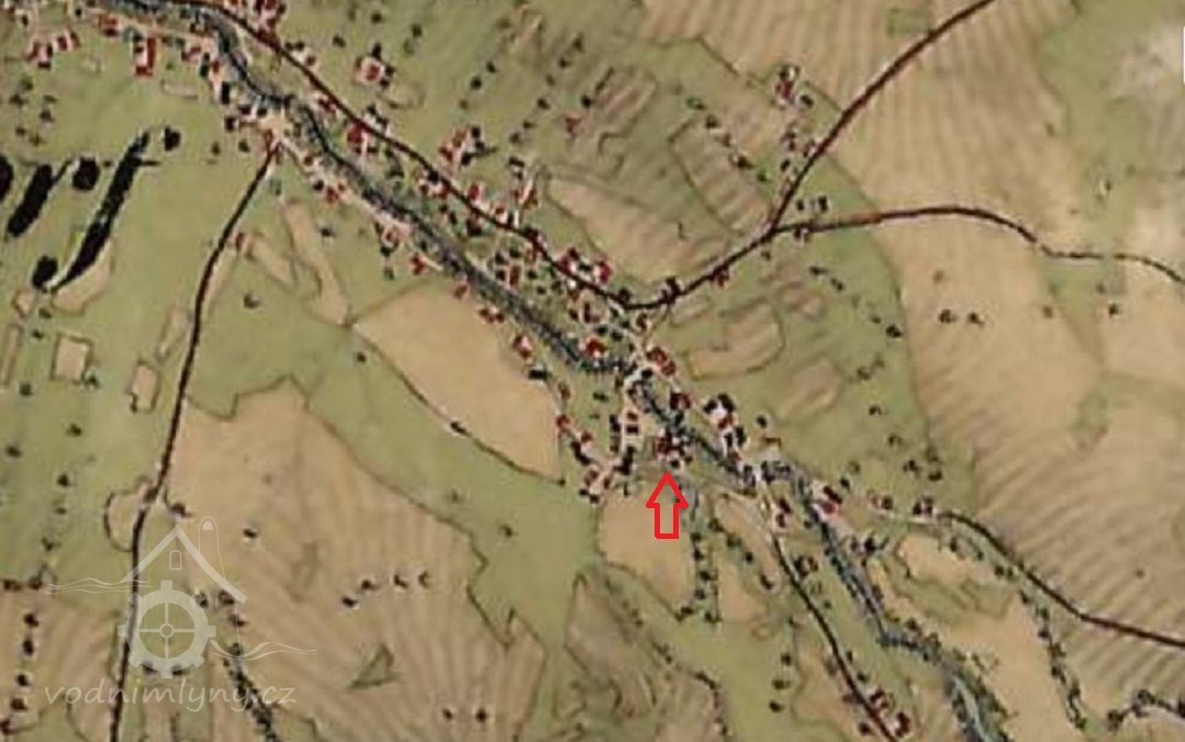 Zřejmě nejstarší mlýn v obci, zbořený ve druhé polovině 20. století. Na parcele mlýna byl po demolici postaven rodinný domek.